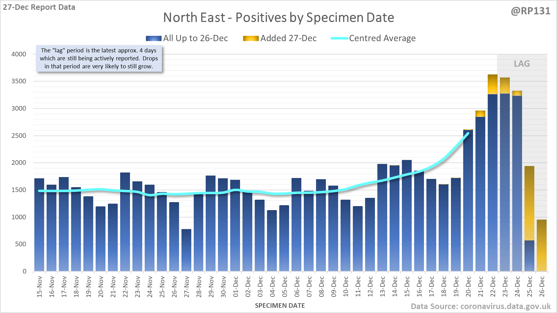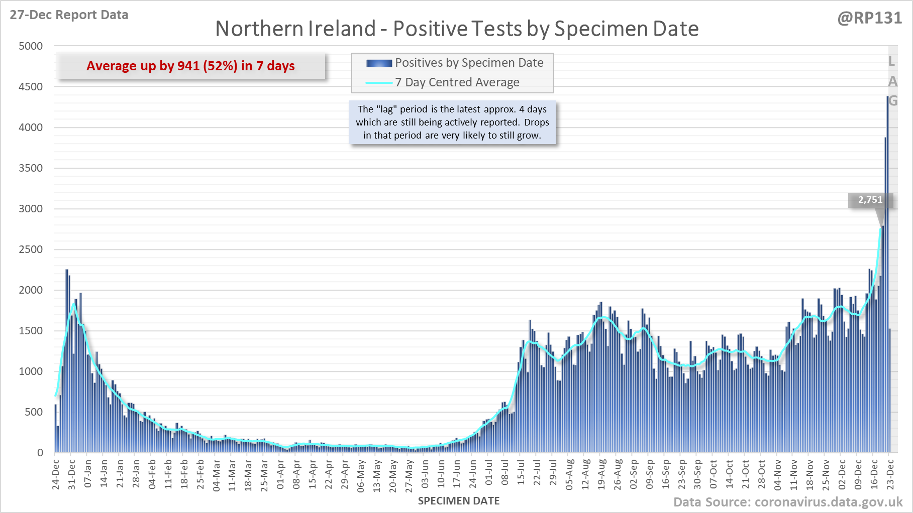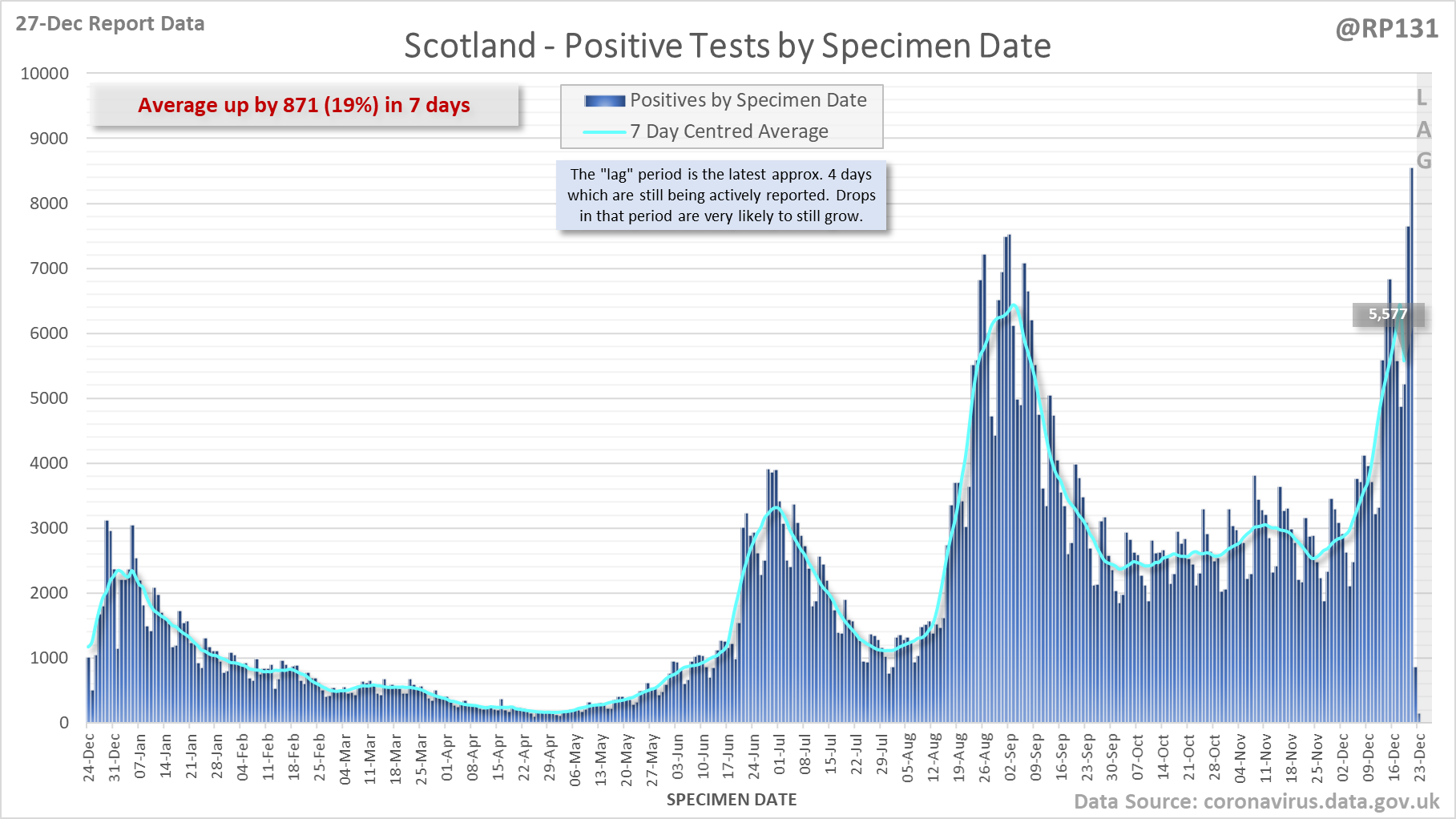 No point doing week-on-week comparisons as everything going to be inconsistent for a while. Very large number of day-1 lateral flow positives today (24,010) and likely to be big lags in PCR data. Give it a few days!