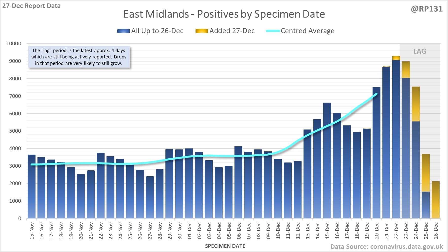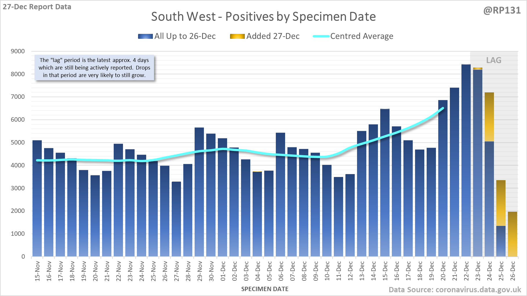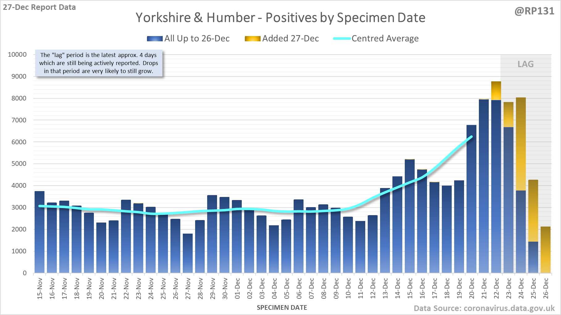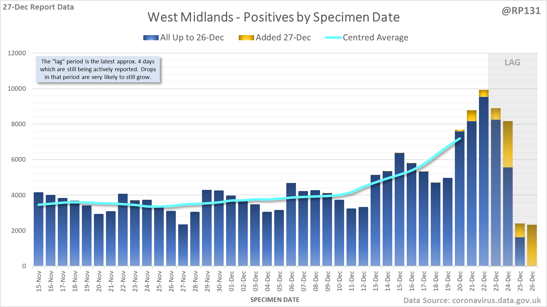 No point doing week-on-week comparisons as everything going to be inconsistent for a while. Very large number of day-1 lateral flow positives today (24,010) and likely to be big lags in PCR data. Give it a few days!