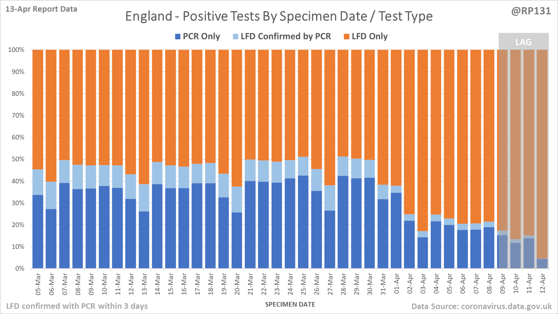 Overall England is DOWN 30% on previous Wednesday and day-1 lateral flow positives are also down by 32%.