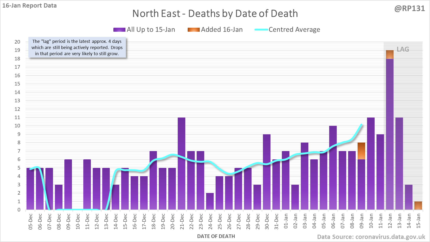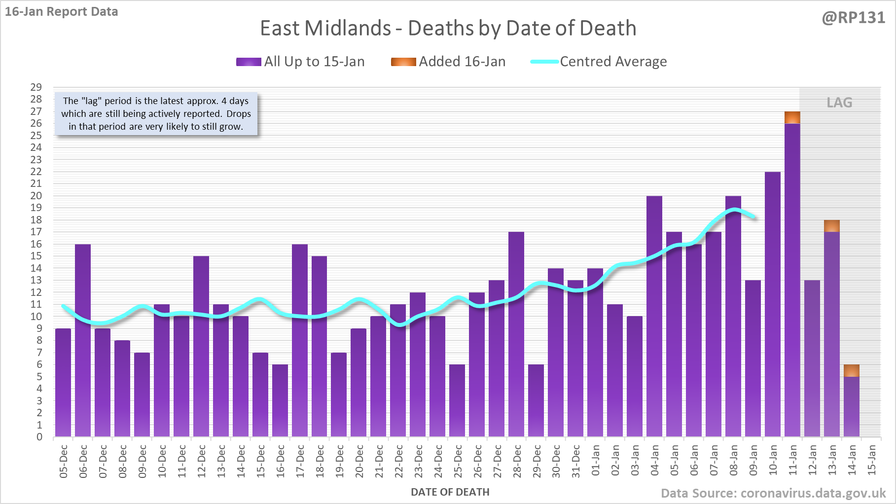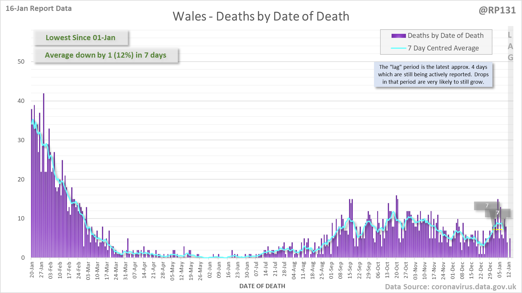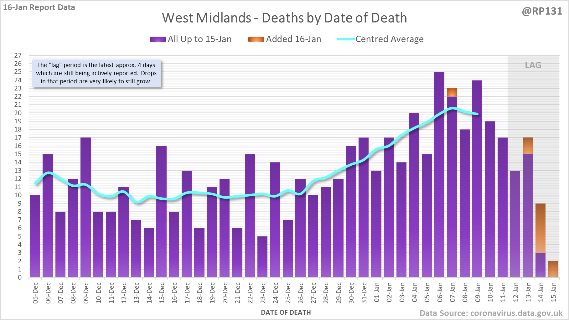 [1/8] 88 new #covid19uk deaths reported today (16-Jan). This brings the rolling average by date of death (allowing 4 days for lag) to 223, an increase of 58 (35%) in the last week.