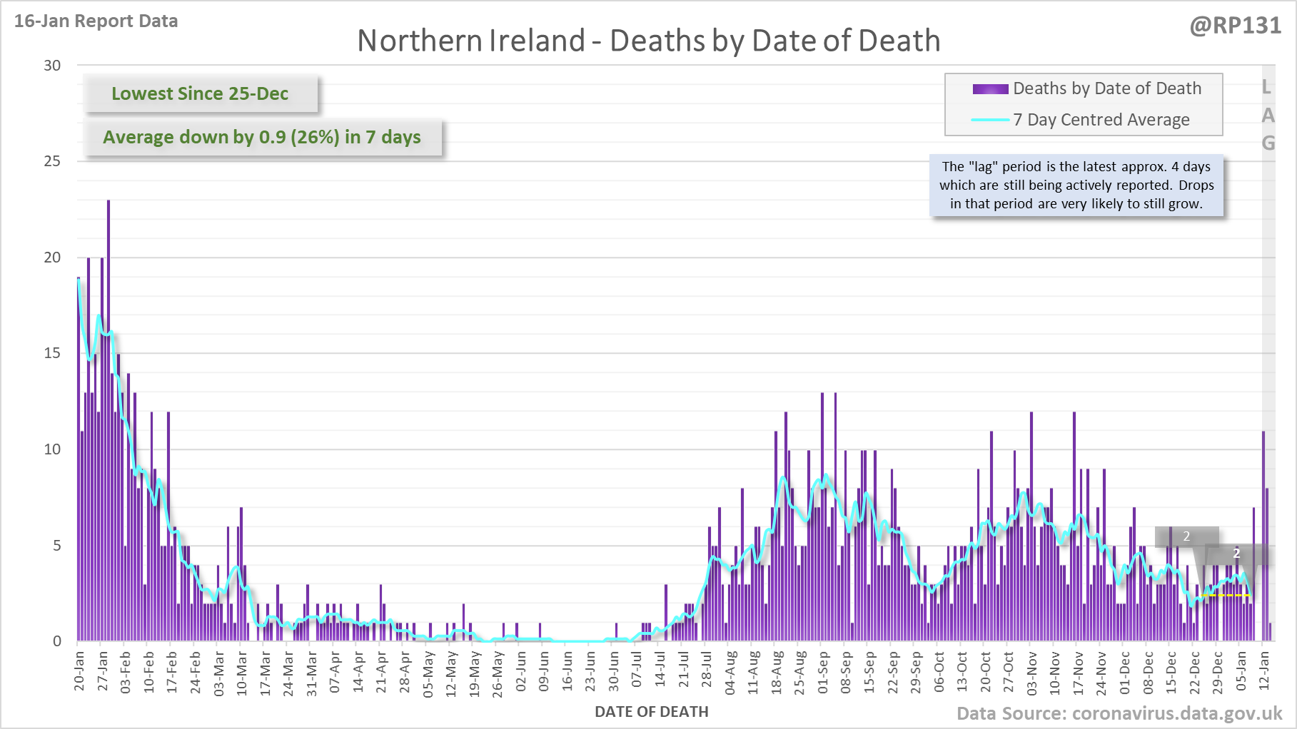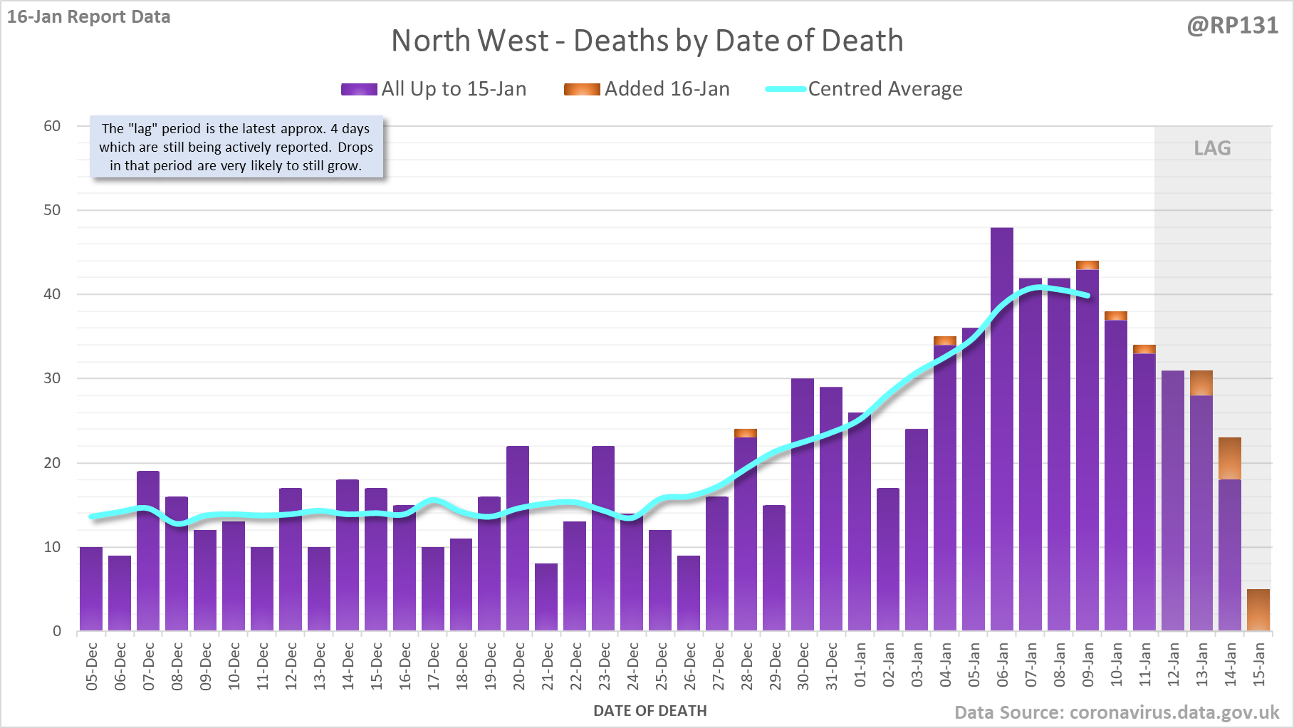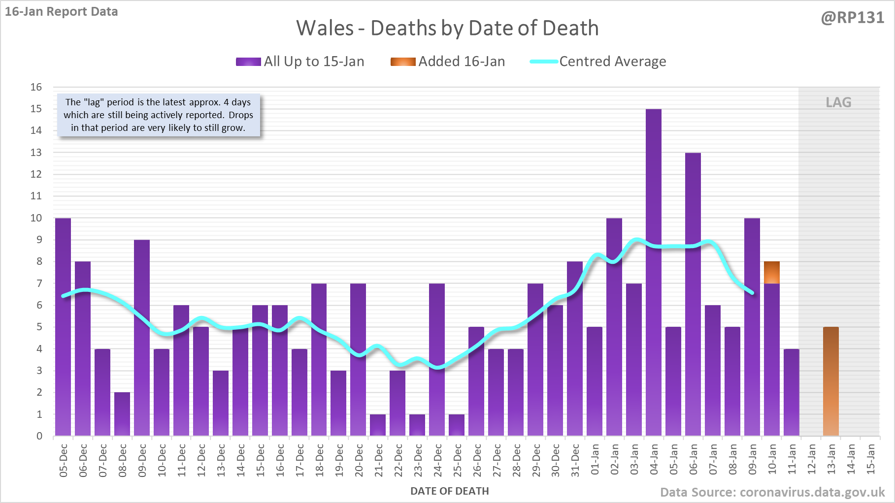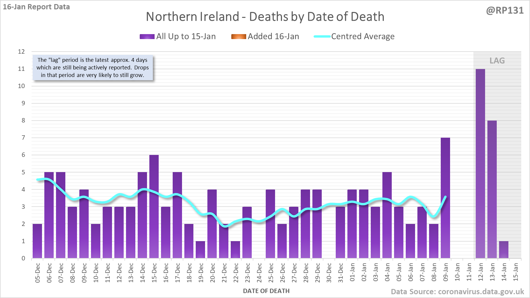 [1/8] 88 new #covid19uk deaths reported today (16-Jan). This brings the rolling average by date of death (allowing 4 days for lag) to 223, an increase of 58 (35%) in the last week.