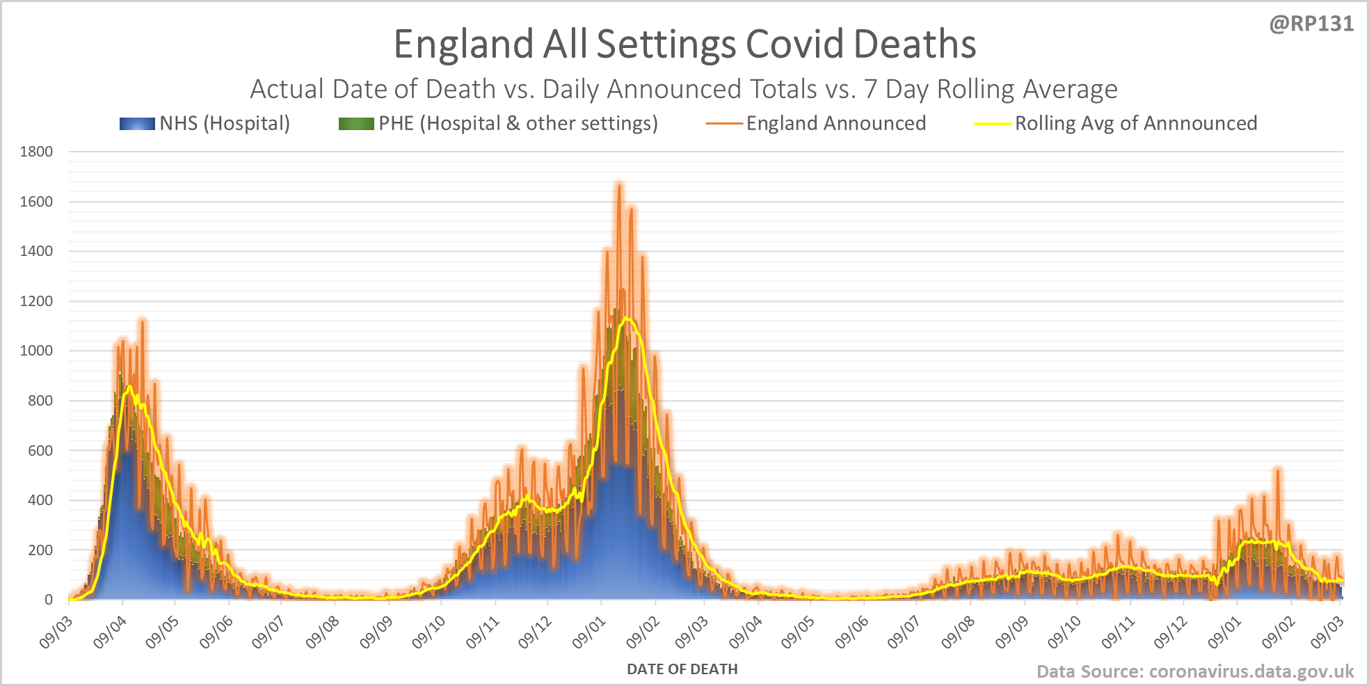[1/24] Dashboard for 11-Mar to explain the #covid19uk total death increase figure of 114.