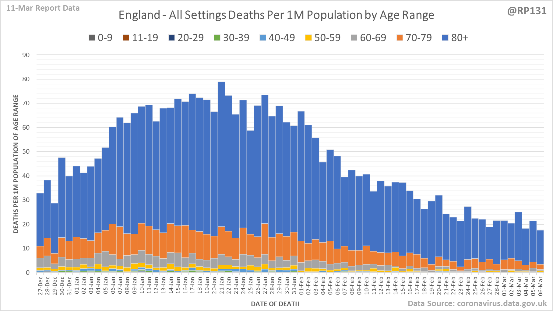 [19/24] England all settings age distribution chart per 1M population (percentage view).