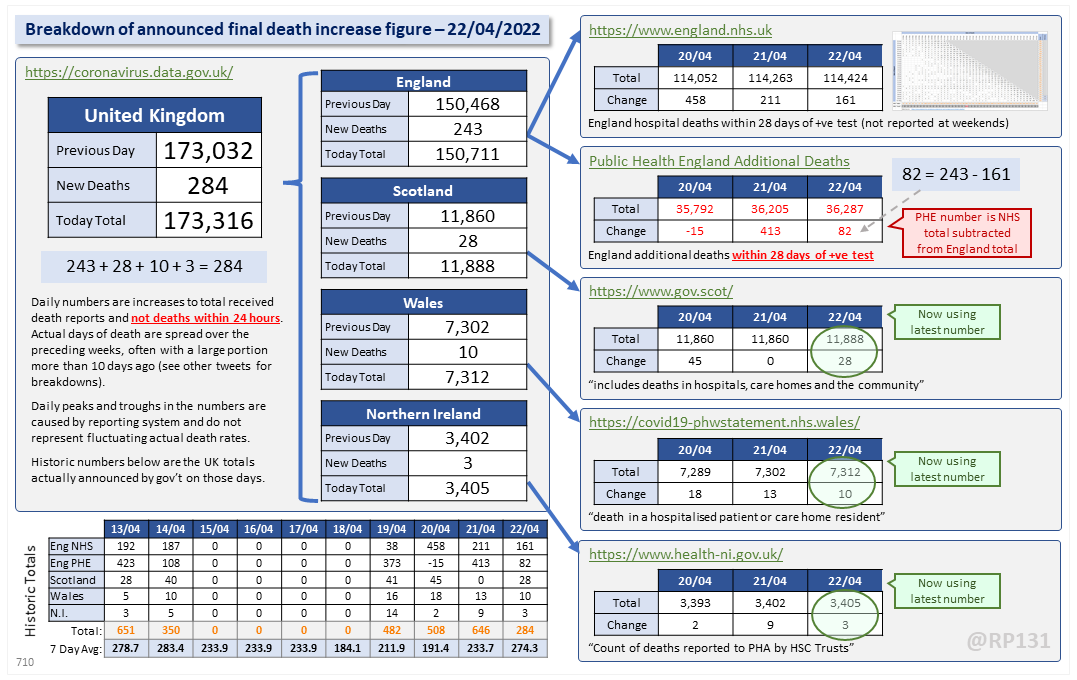 [1/24] Dashboard for 22-Apr to explain the #covid19uk total death increase figure of 284.