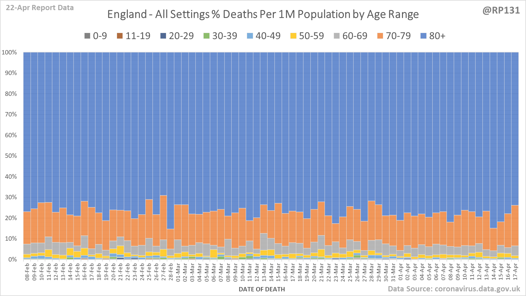 [19/24] England all settings age distribution chart per 1M population (percentage view).