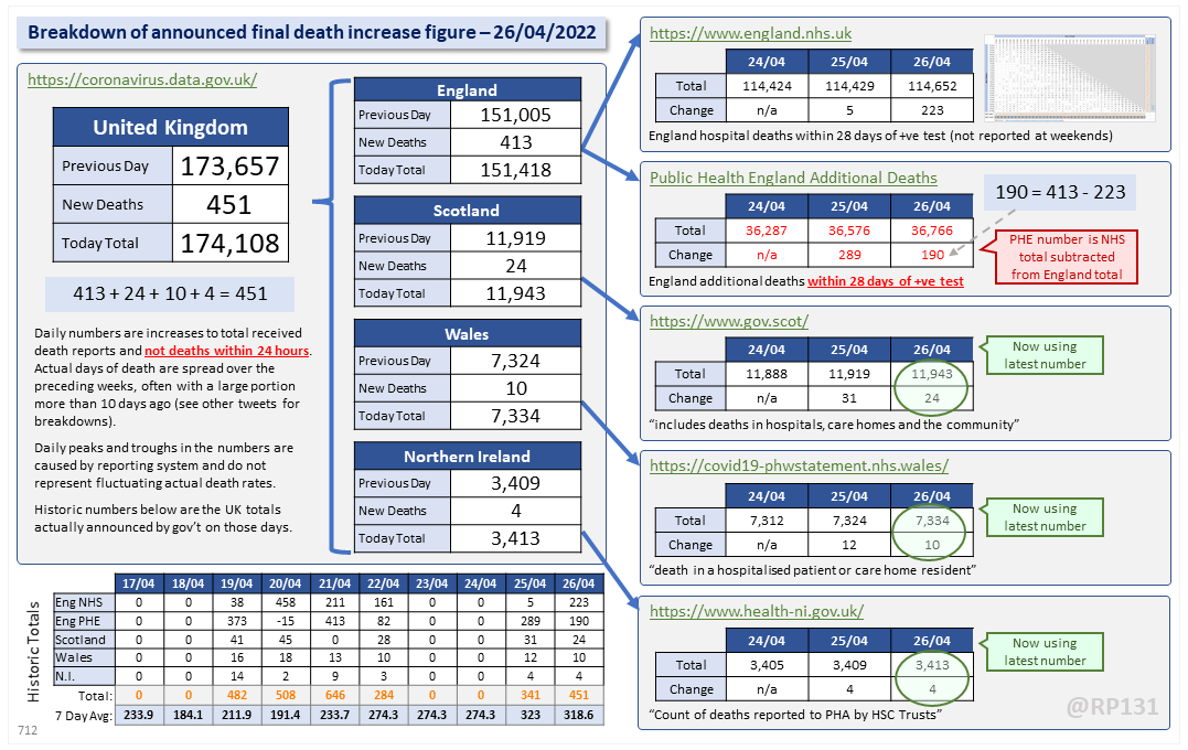[1/24] Dashboard for 26-Apr to explain the #covid19uk total death increase figure of 451.