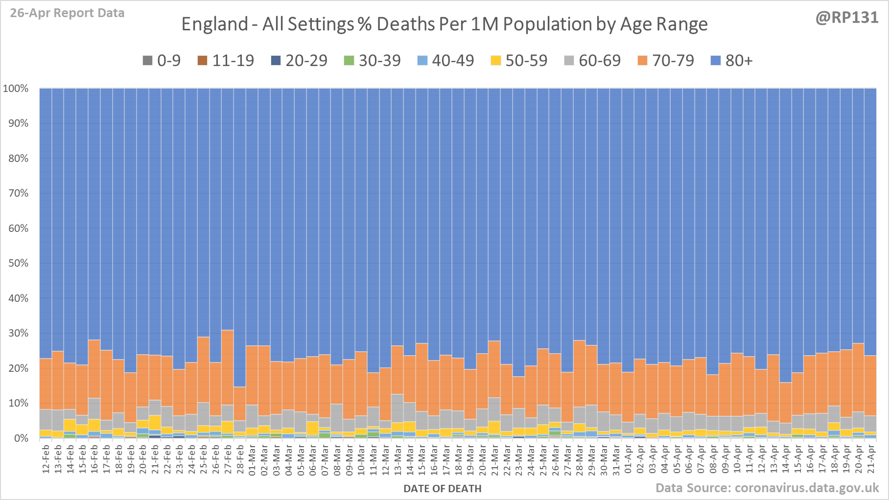 [19/24] England all settings age distribution chart per 1M population (percentage view).