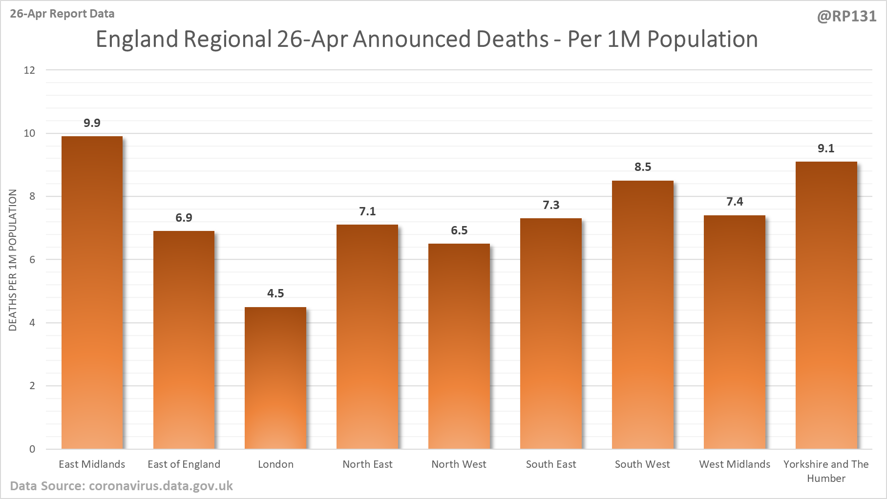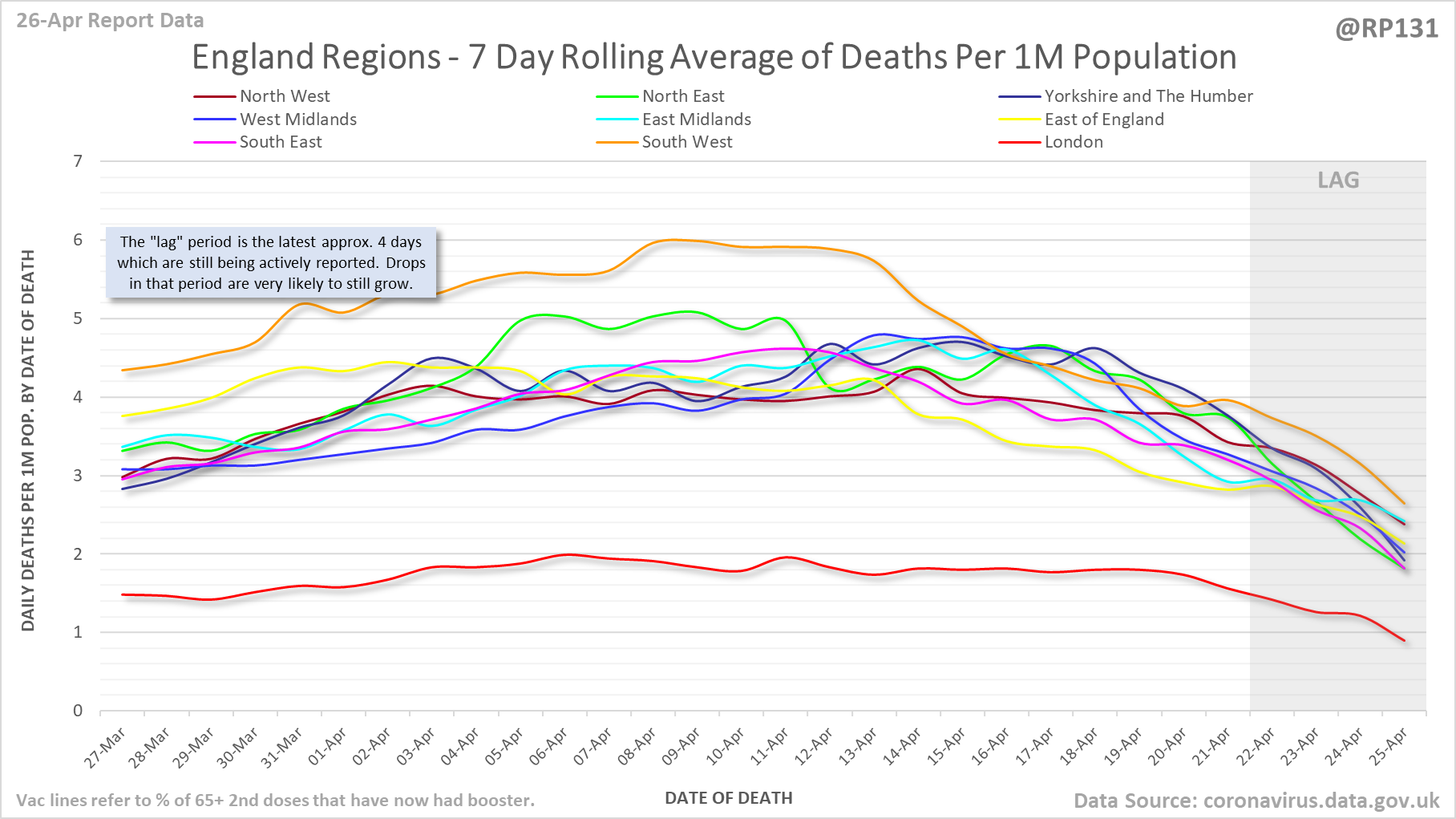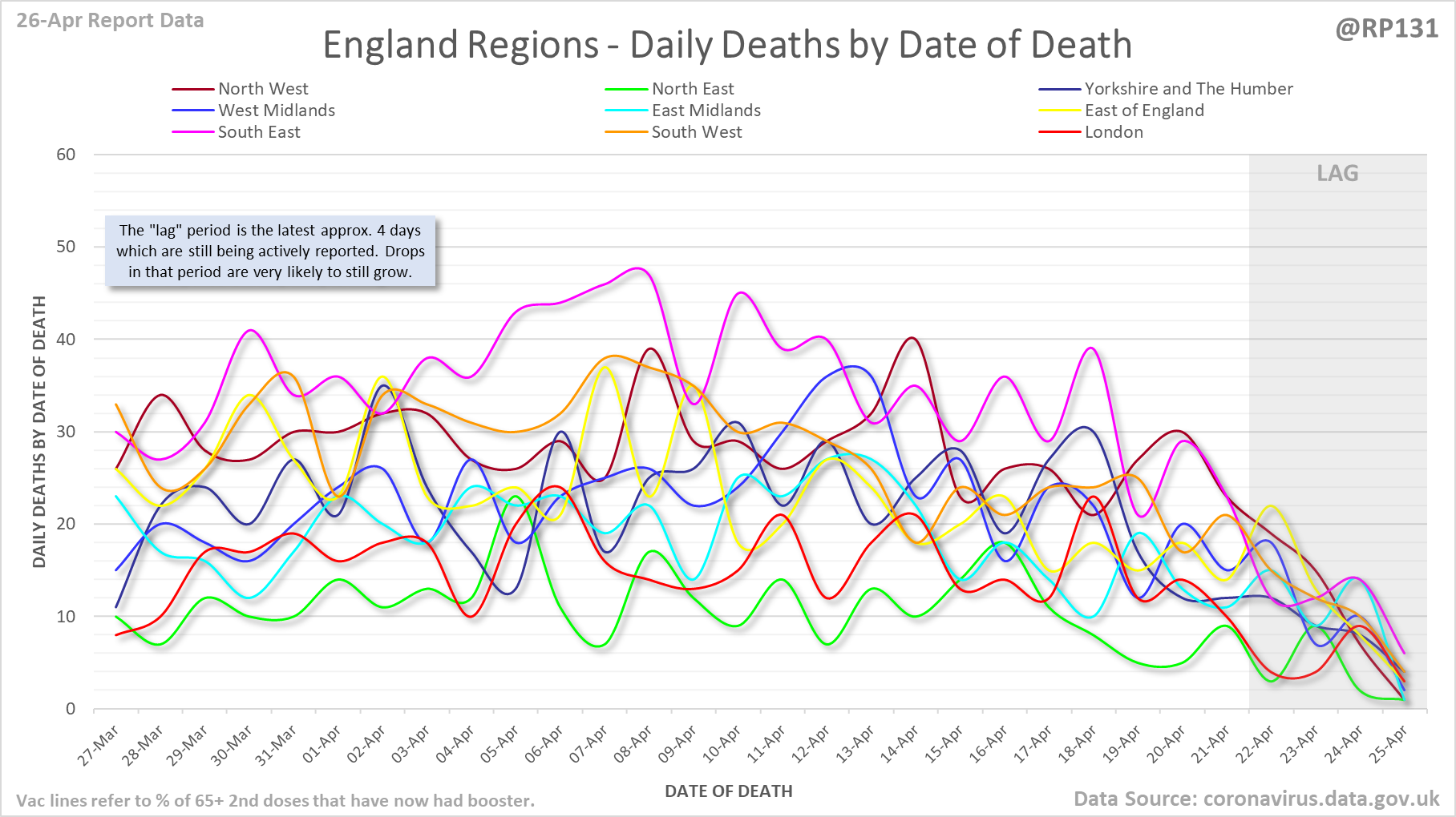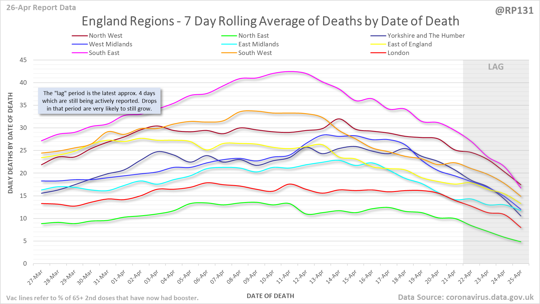 [4/24] Date of Death chart for England regions.