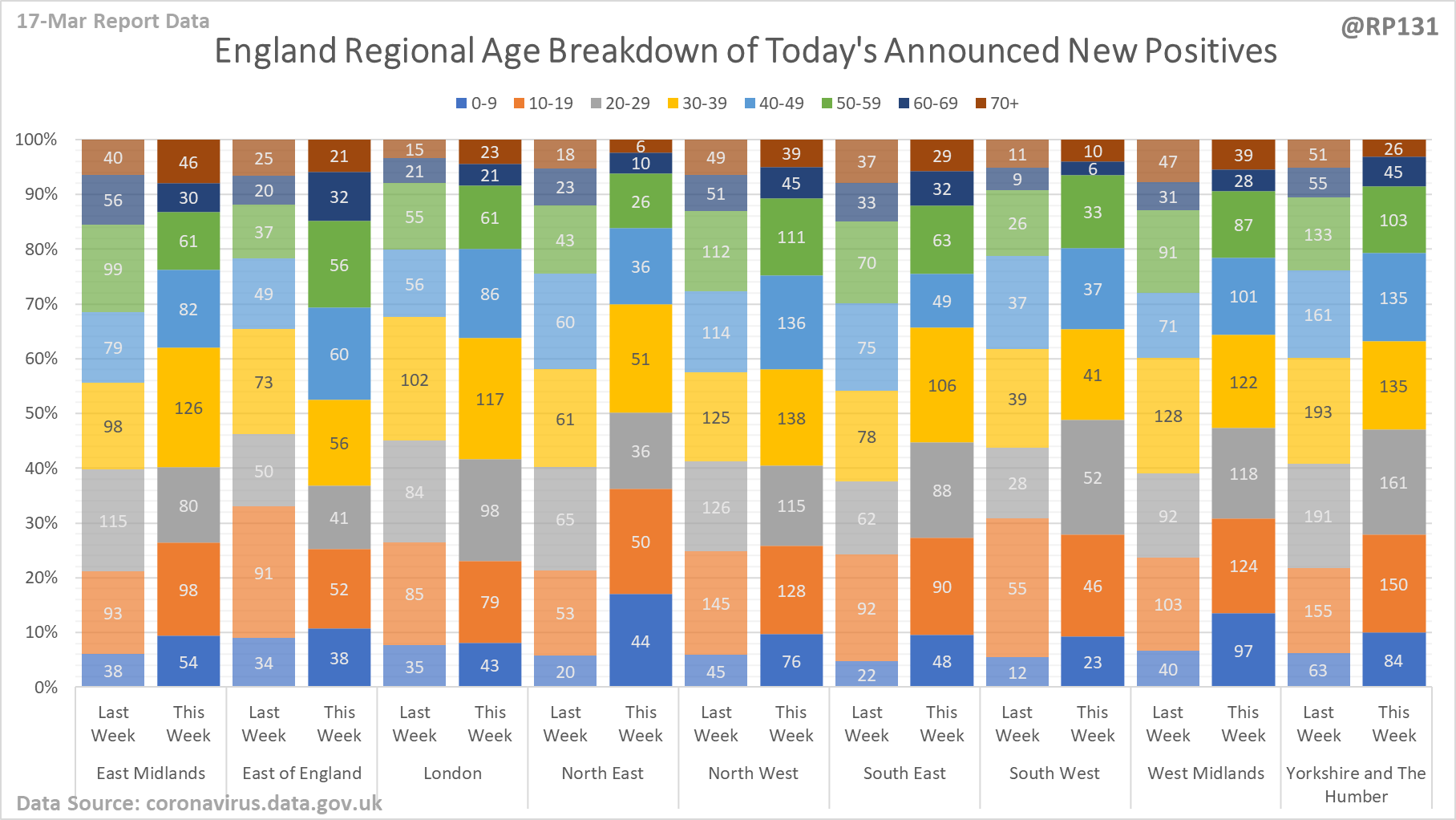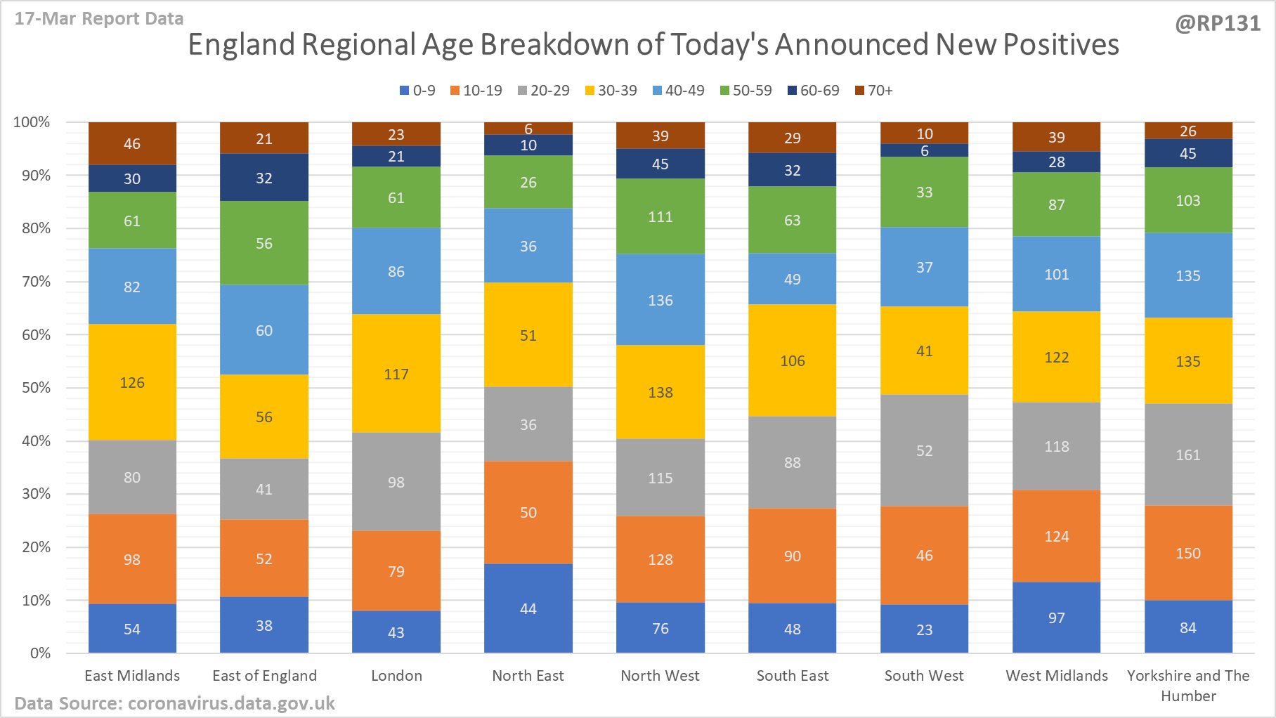 [16/22] Regional / age distribution of today's newly announced positives for England.