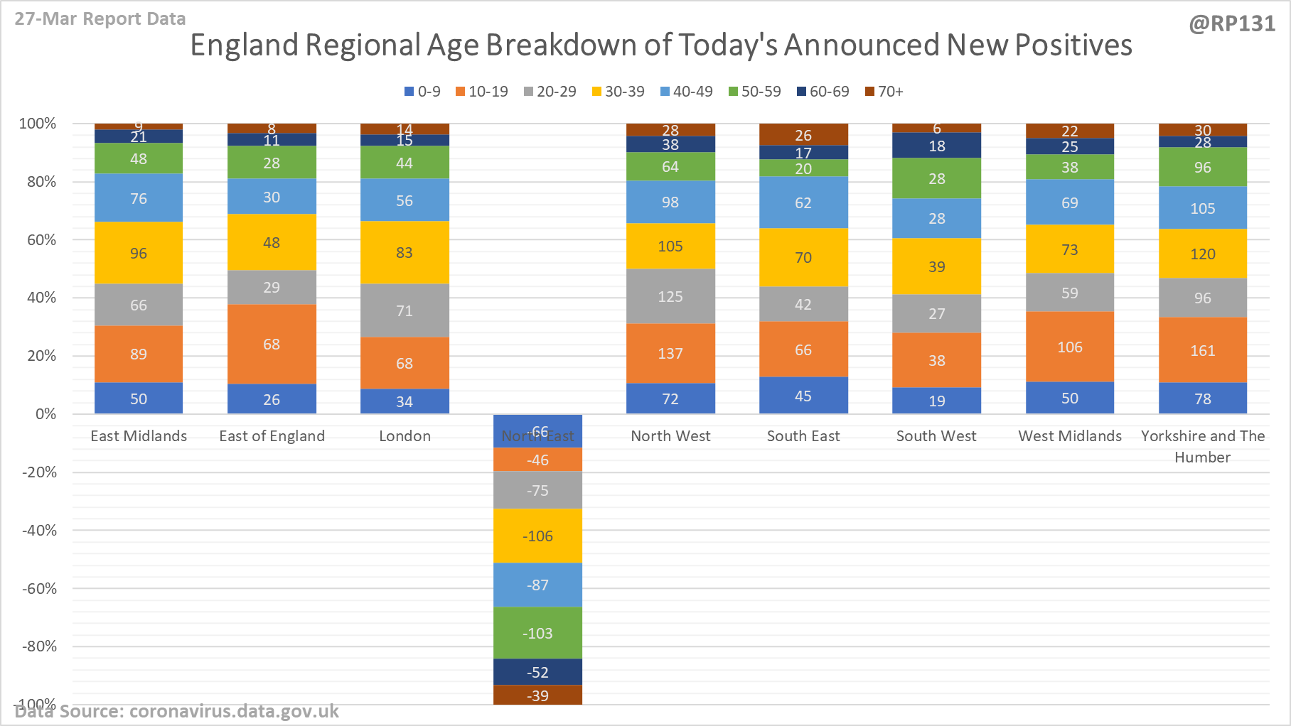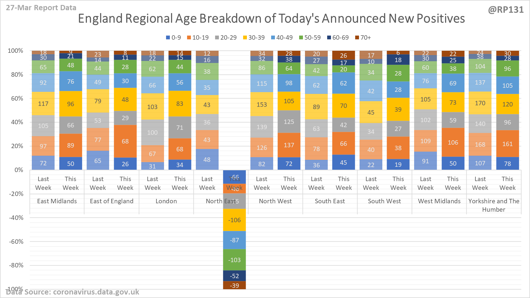 [16/22] Regional / age distribution of today's newly announced positives for England.