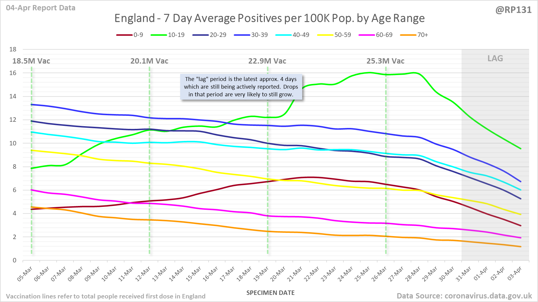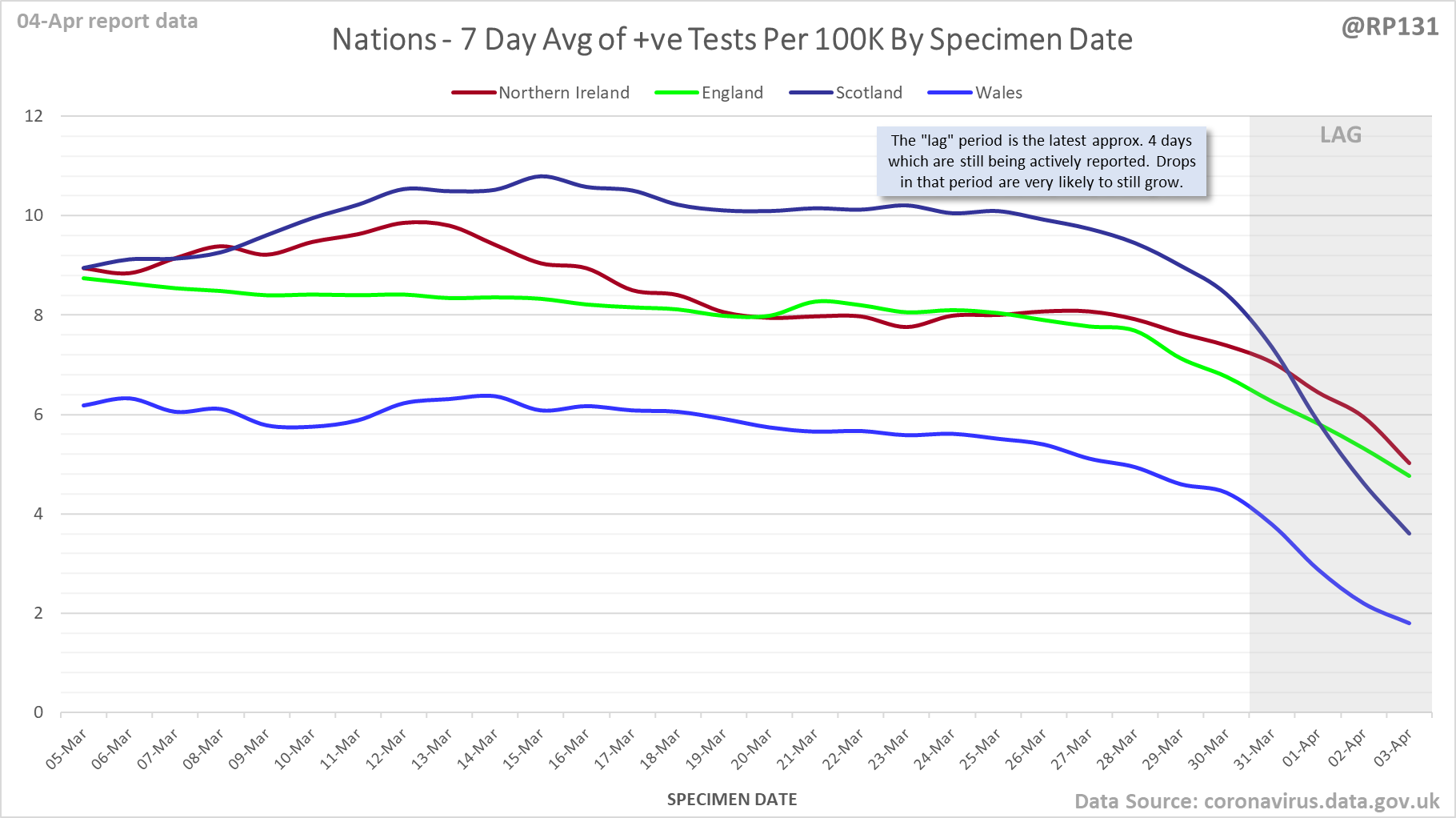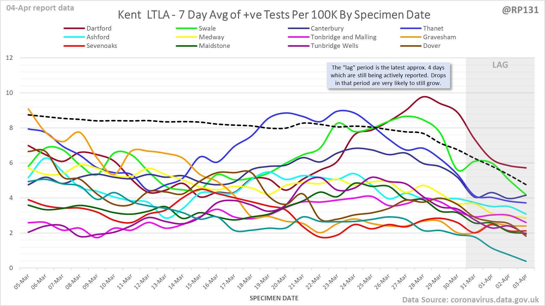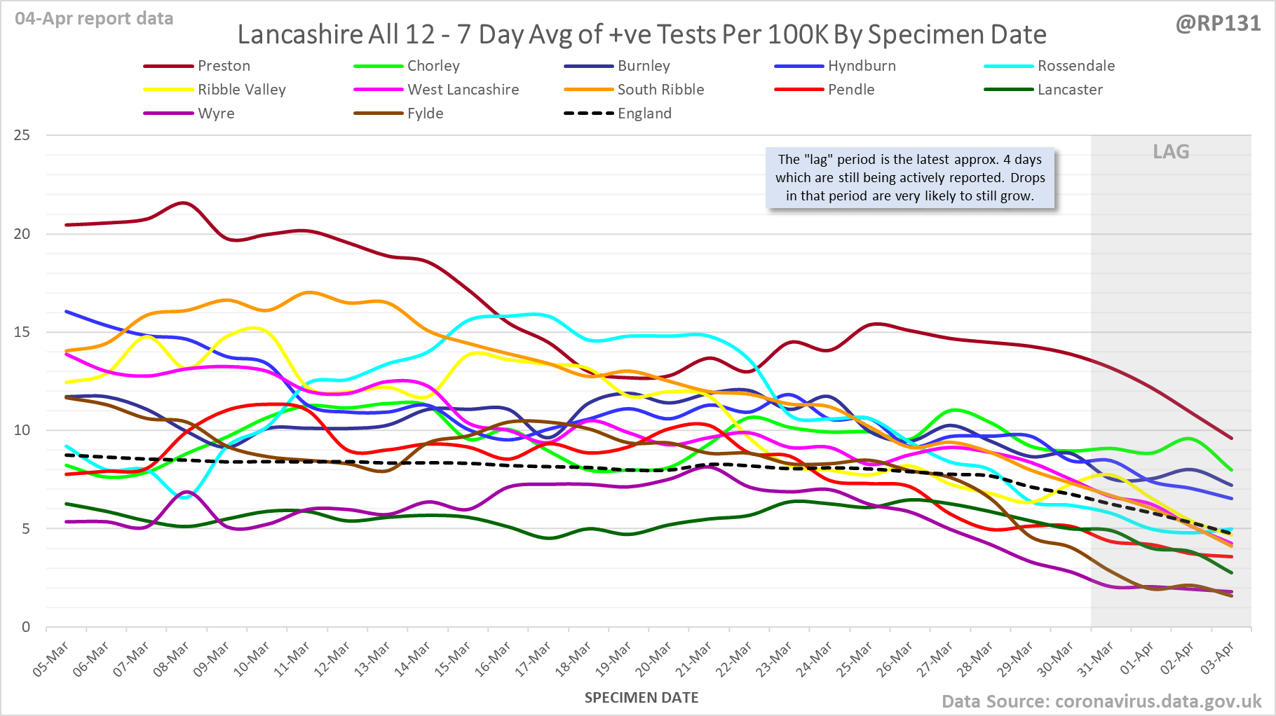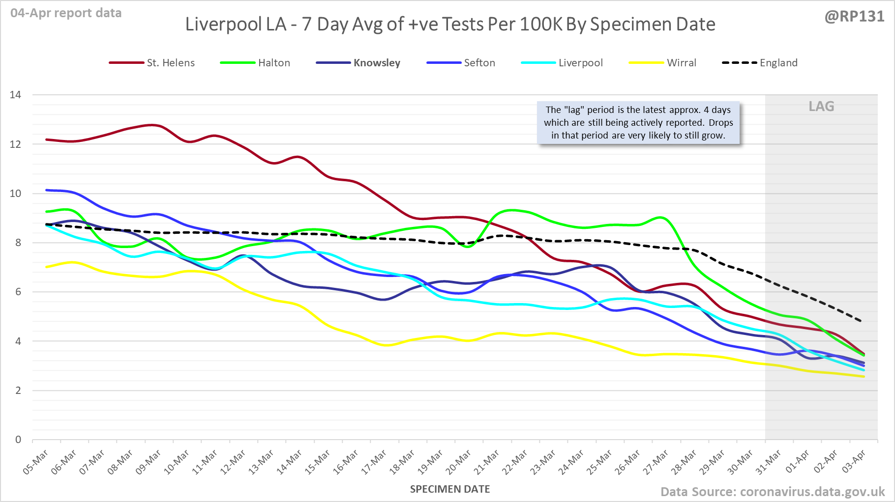 [1/22] #covid19uk - Detailed positive tests thread. The majority of this thread is a set of views of rolling 7 day average positives per 100K by specimen date. Starting with England regions: