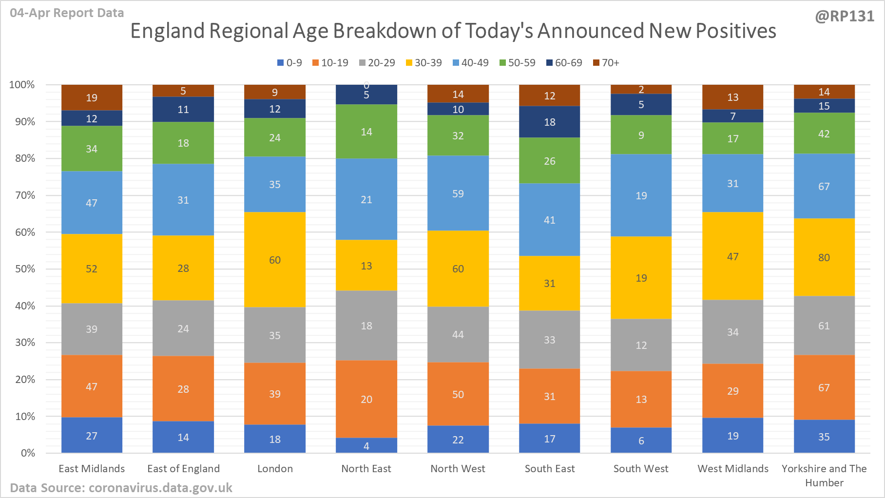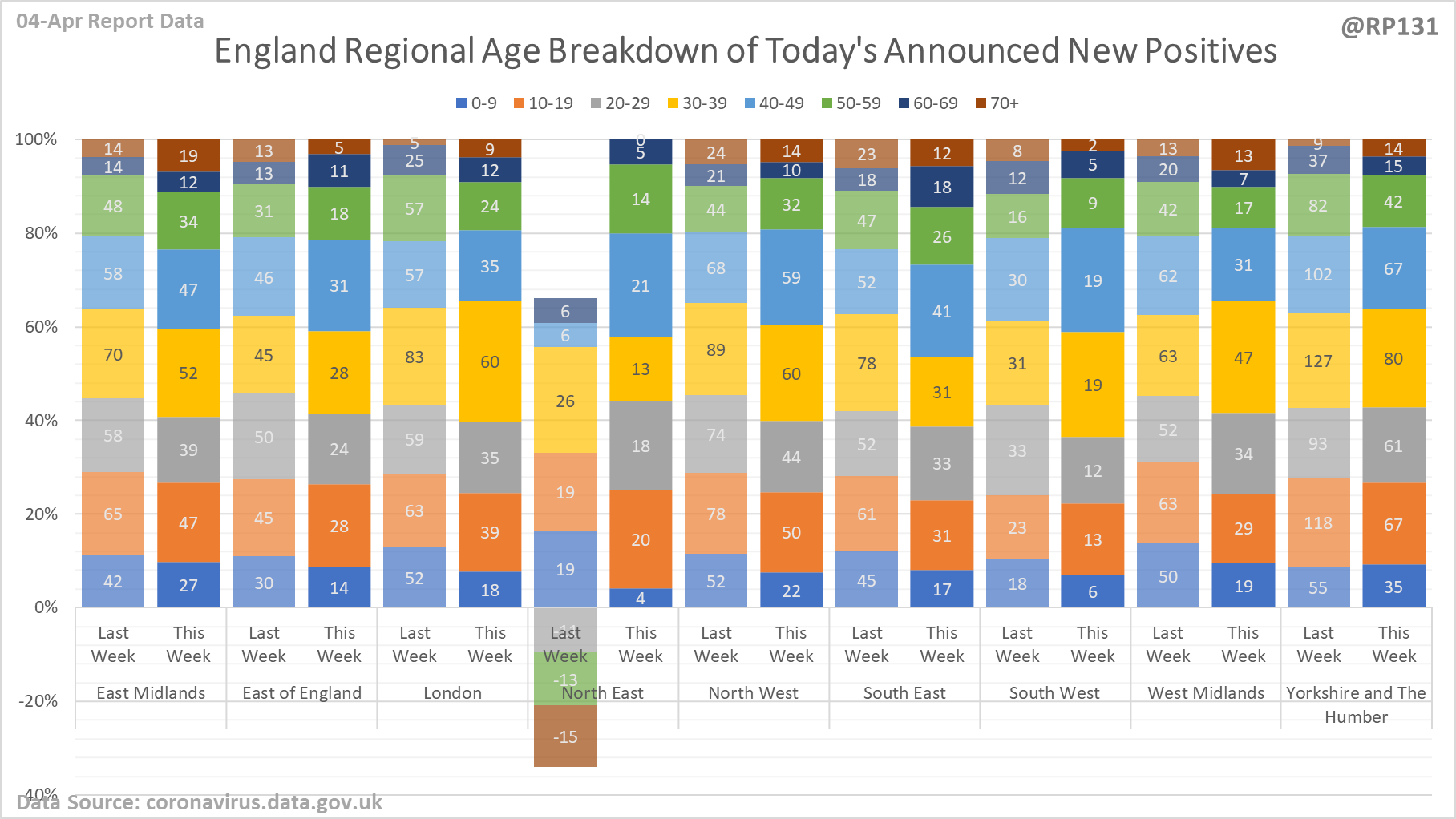 [16/22] Regional / age distribution of today's newly announced positives for England.