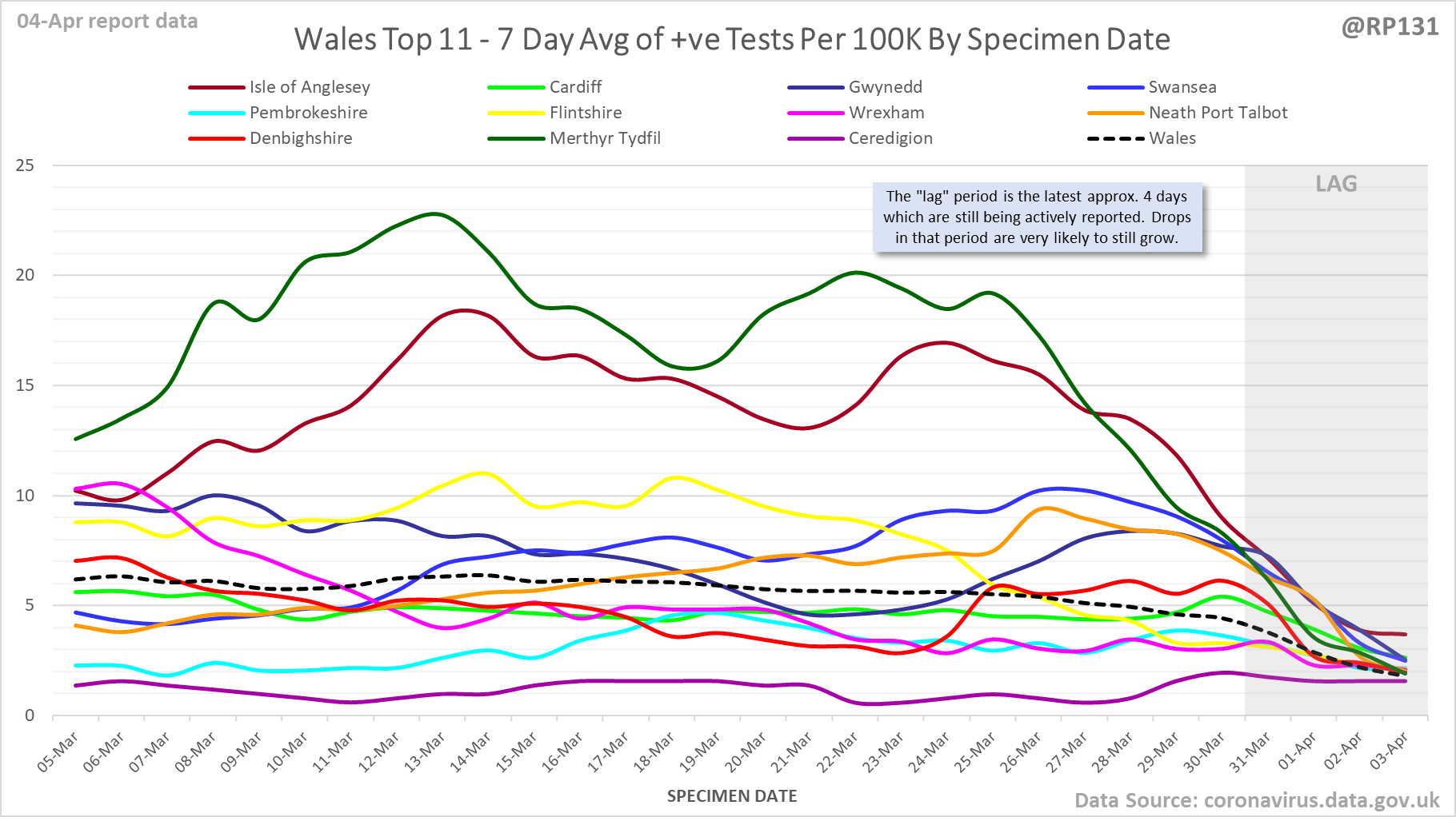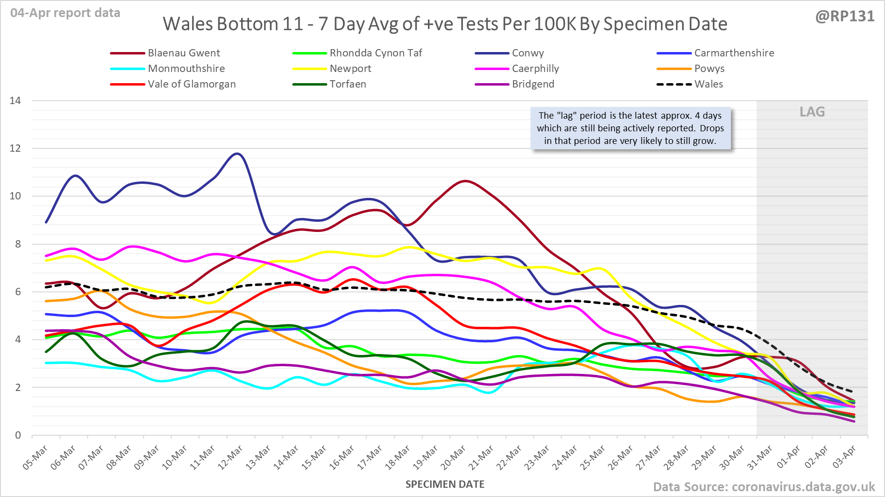 [3/22] Wales - Top and bottom 11 (i.e. all 22 of them). Note they may have different Y axis scales to each other.