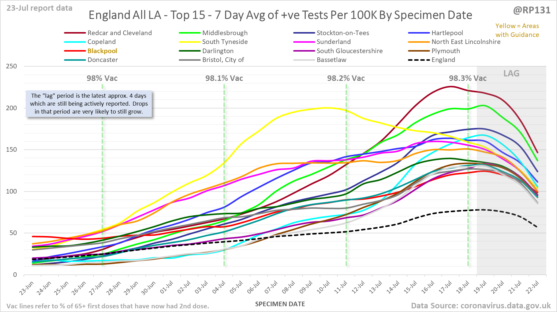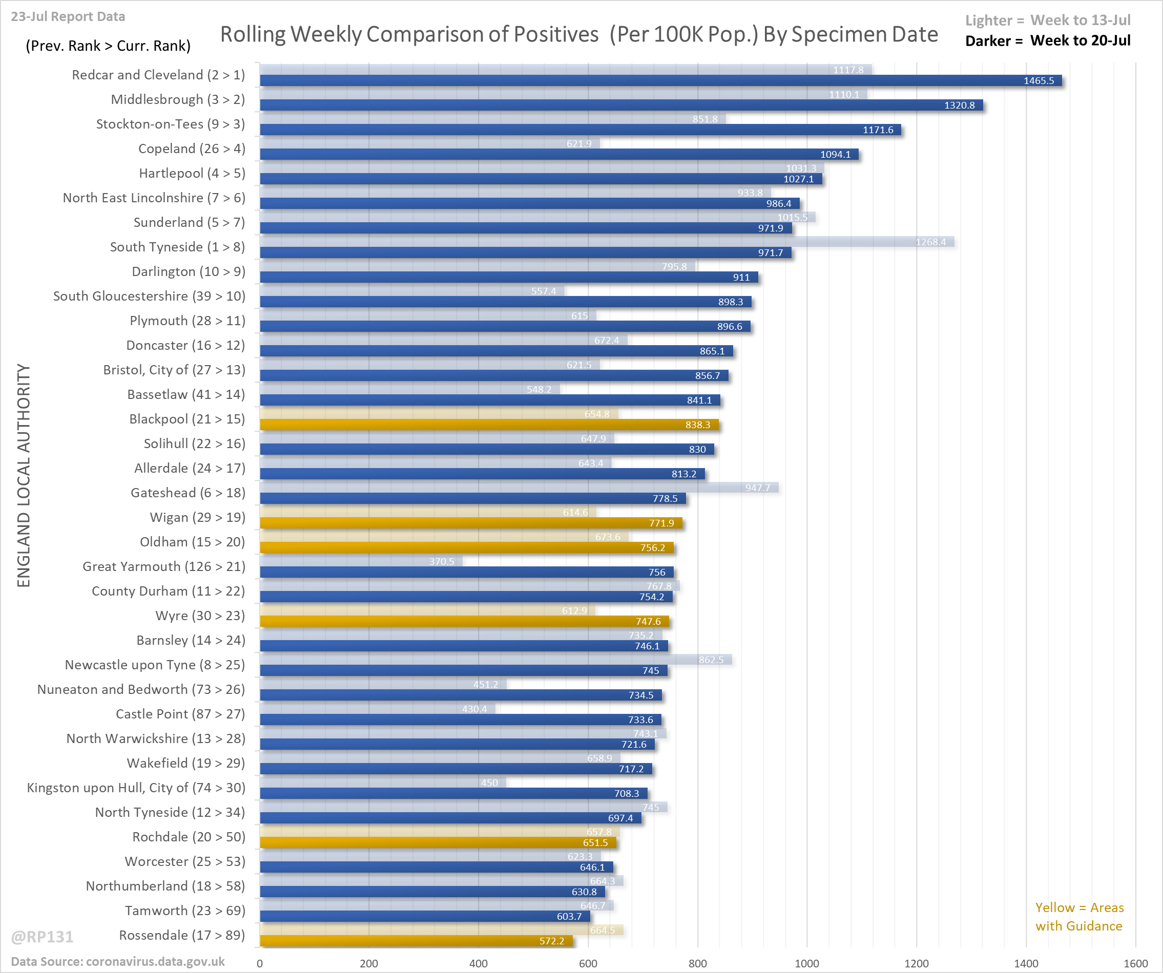 [22/23] Rolling weekly comparison of totals up to 3 days ago. This chart is useful to see the relative movements of the local authorities towards the top of the list.