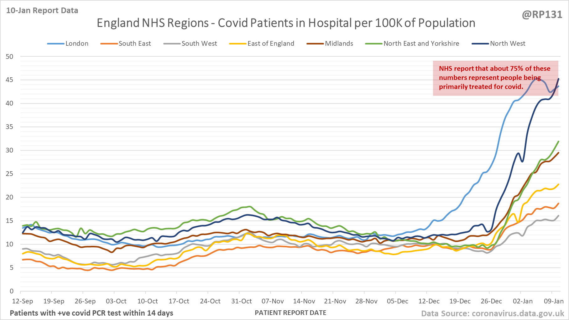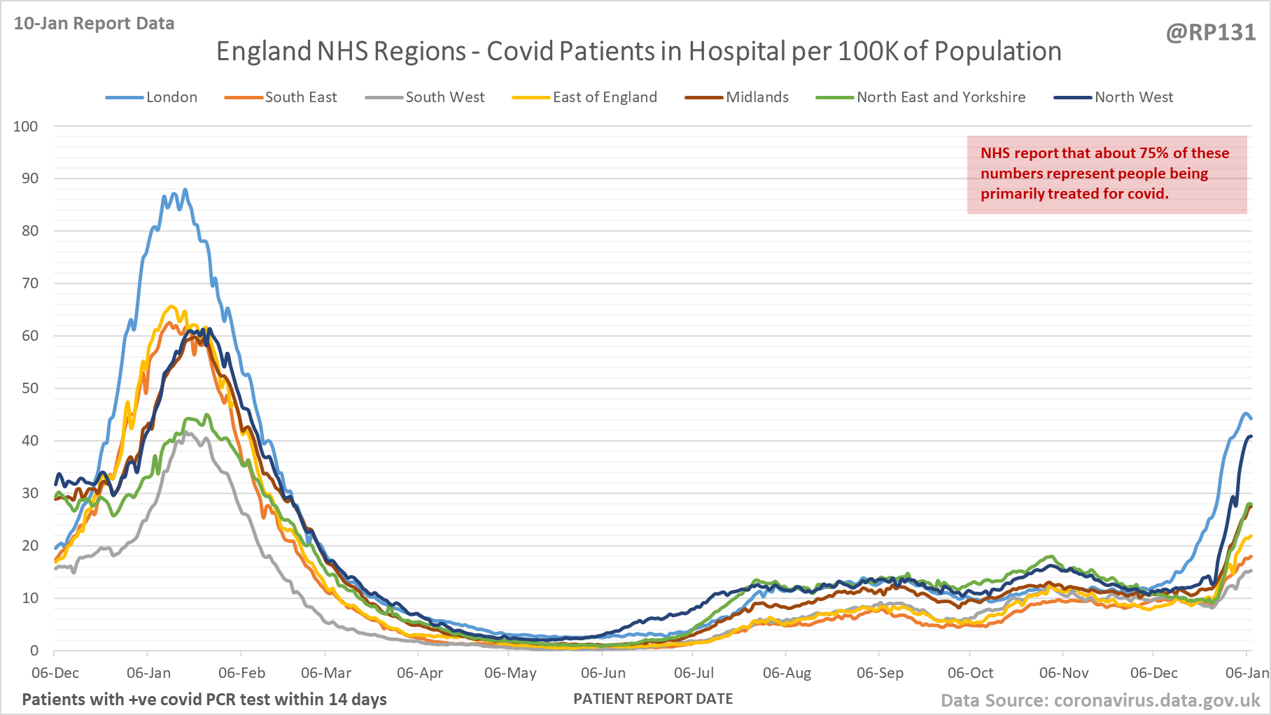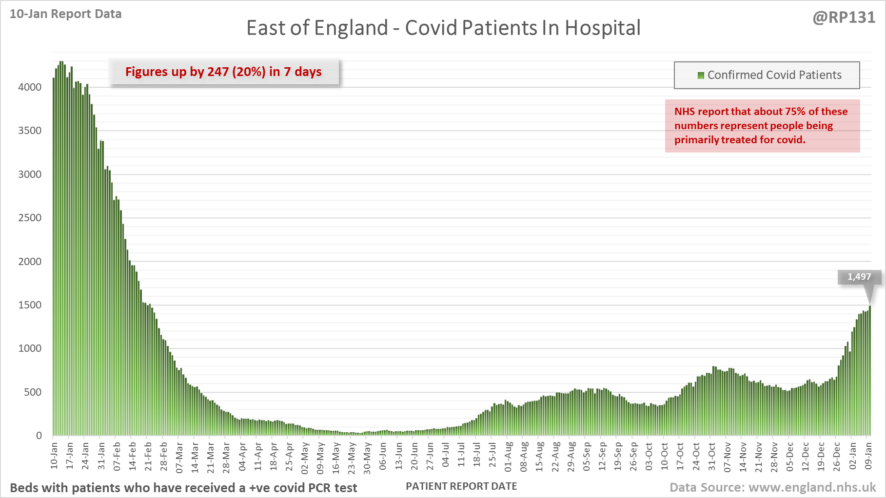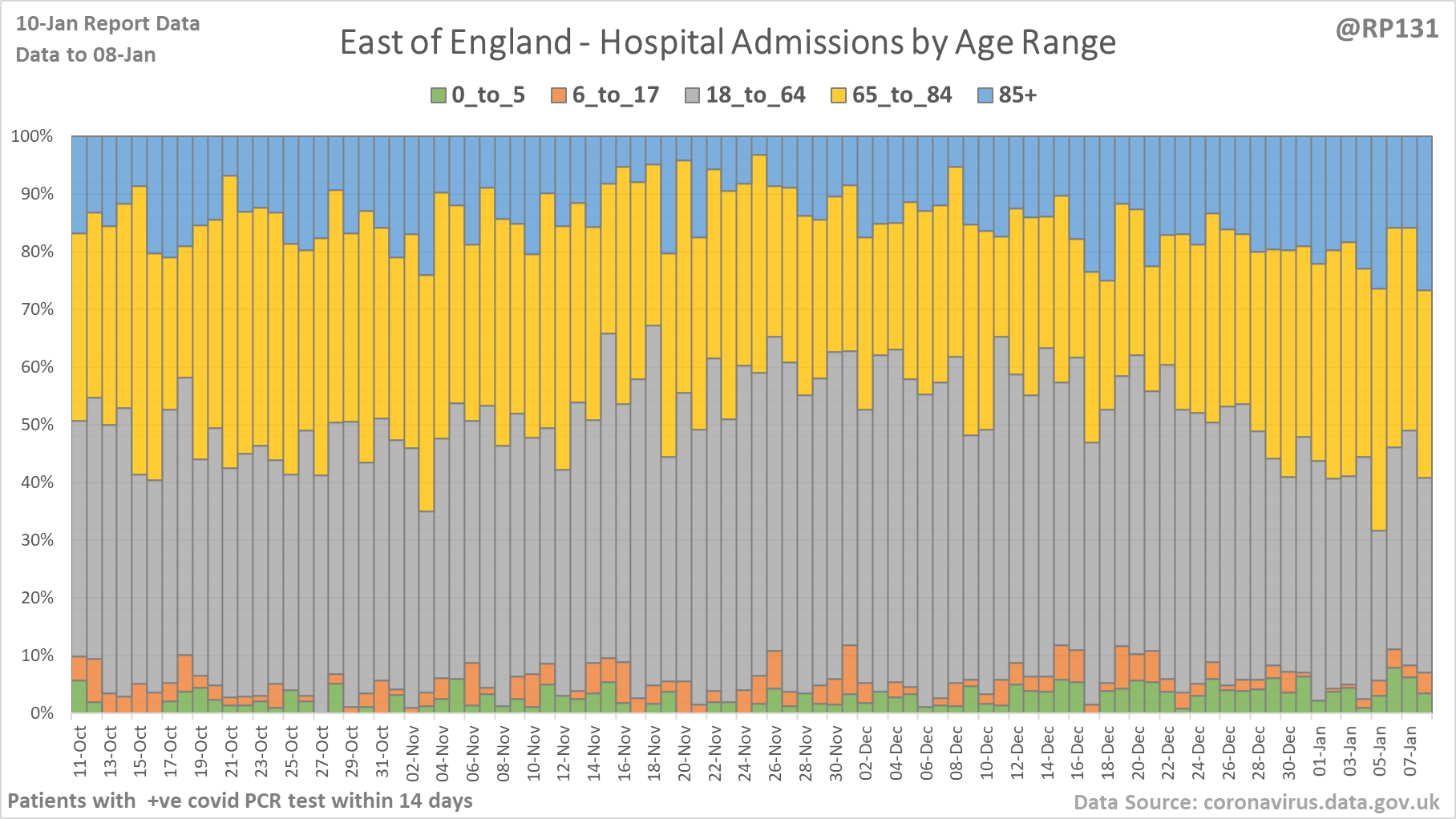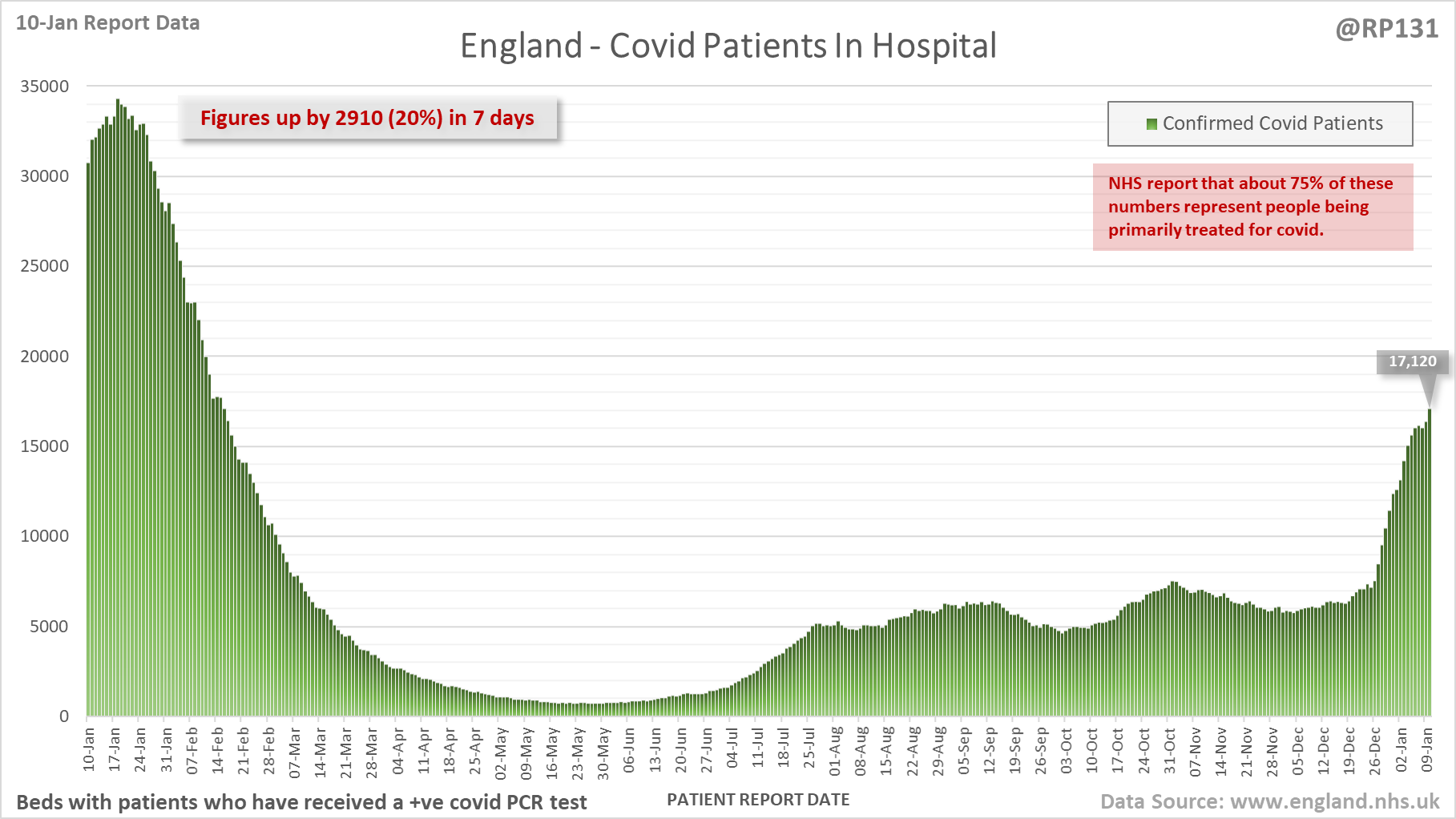 [5/28] Latest view on England patients with a positive covid test currently in hospital, as of 8am on 10-Jan.