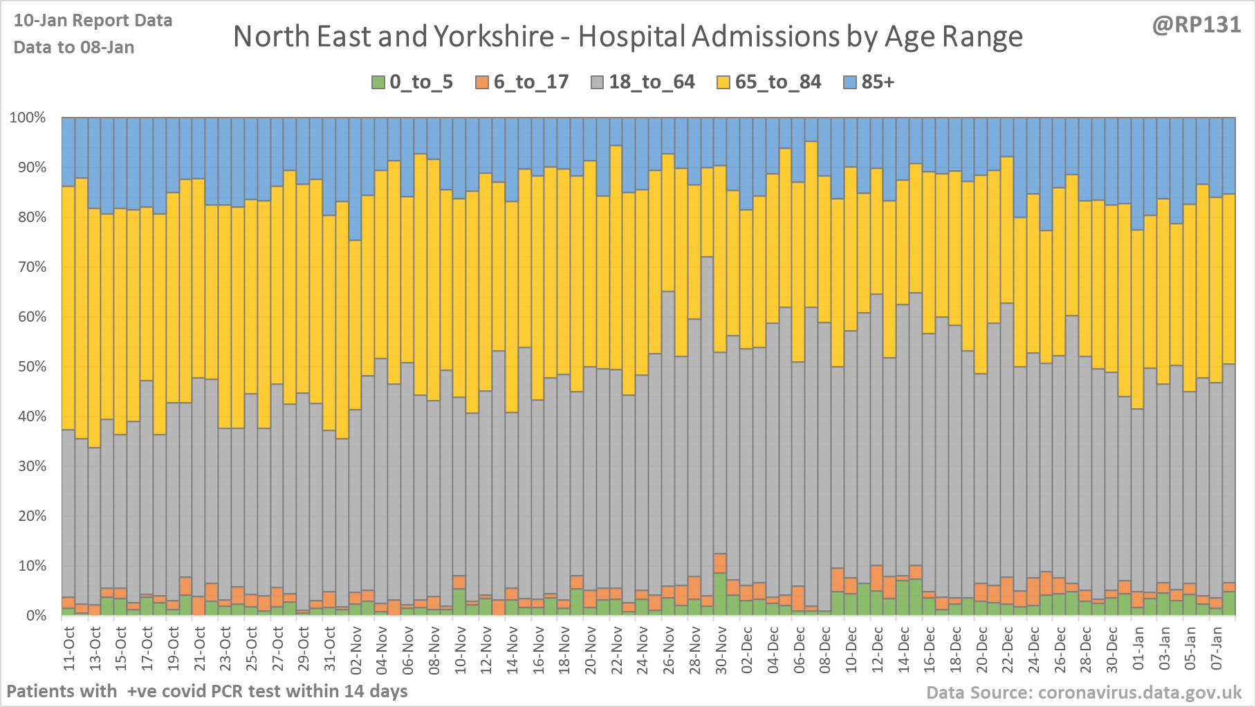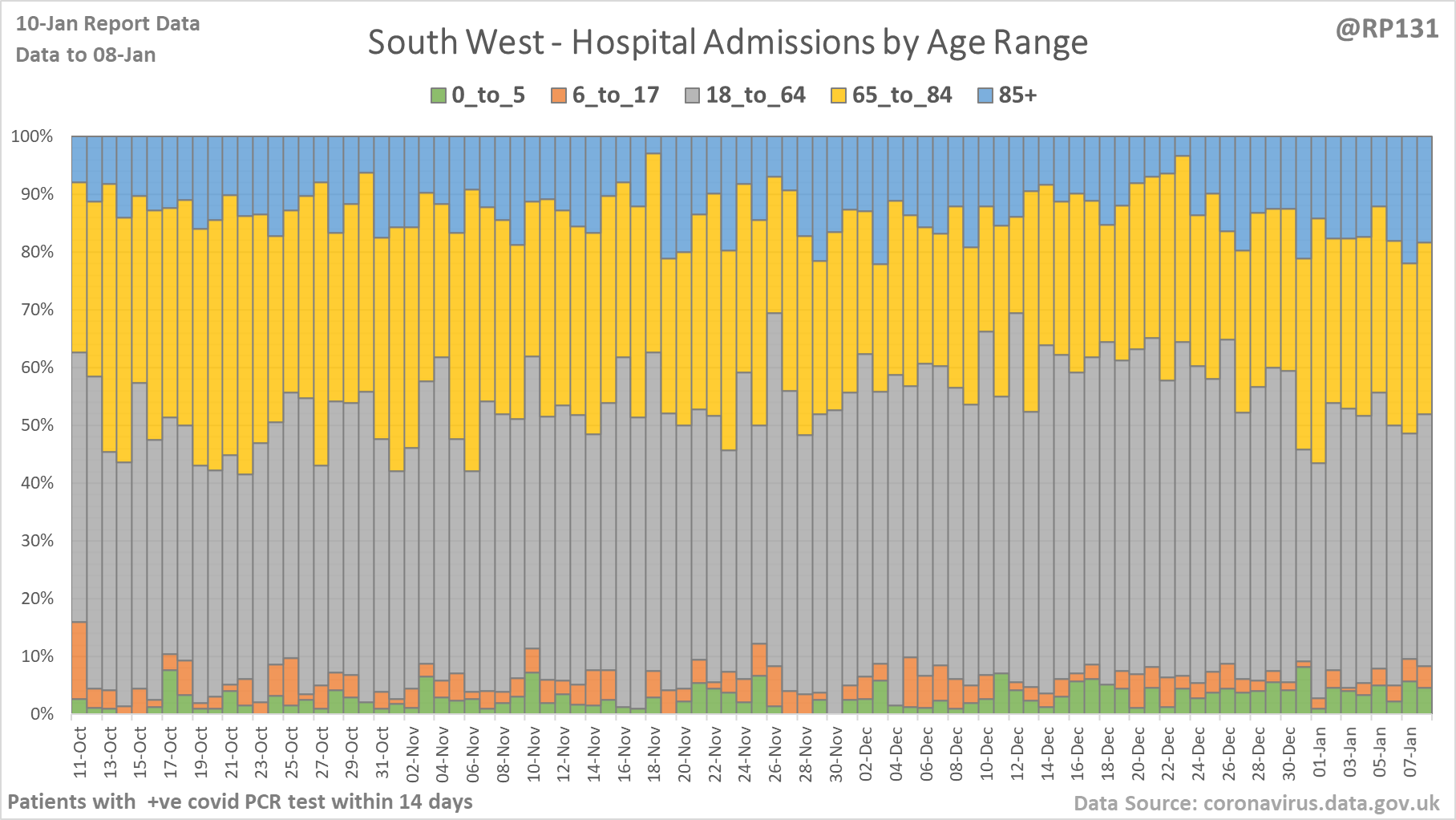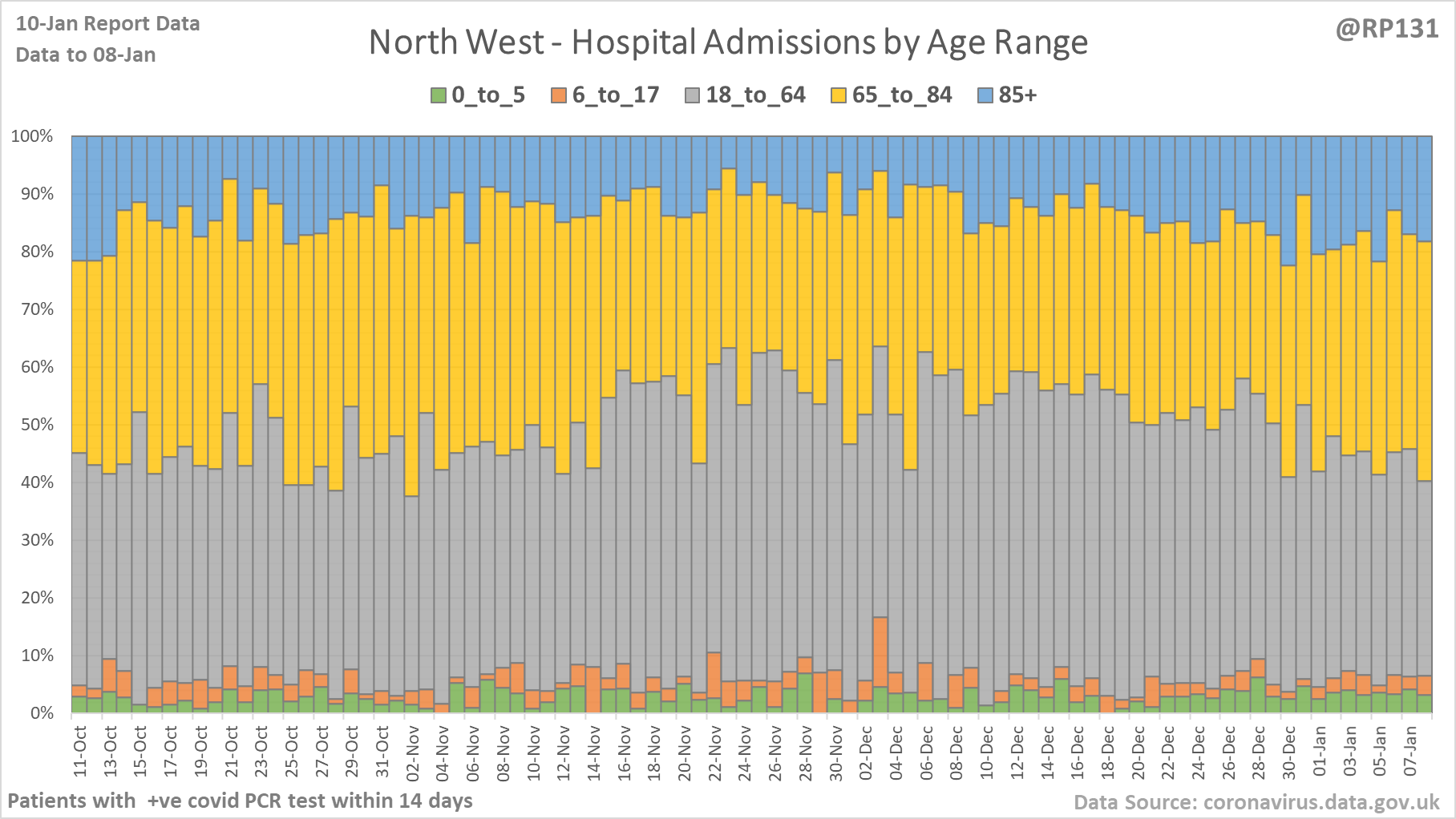 [14/28] Percentage view of age ranges of England hospital admissions.