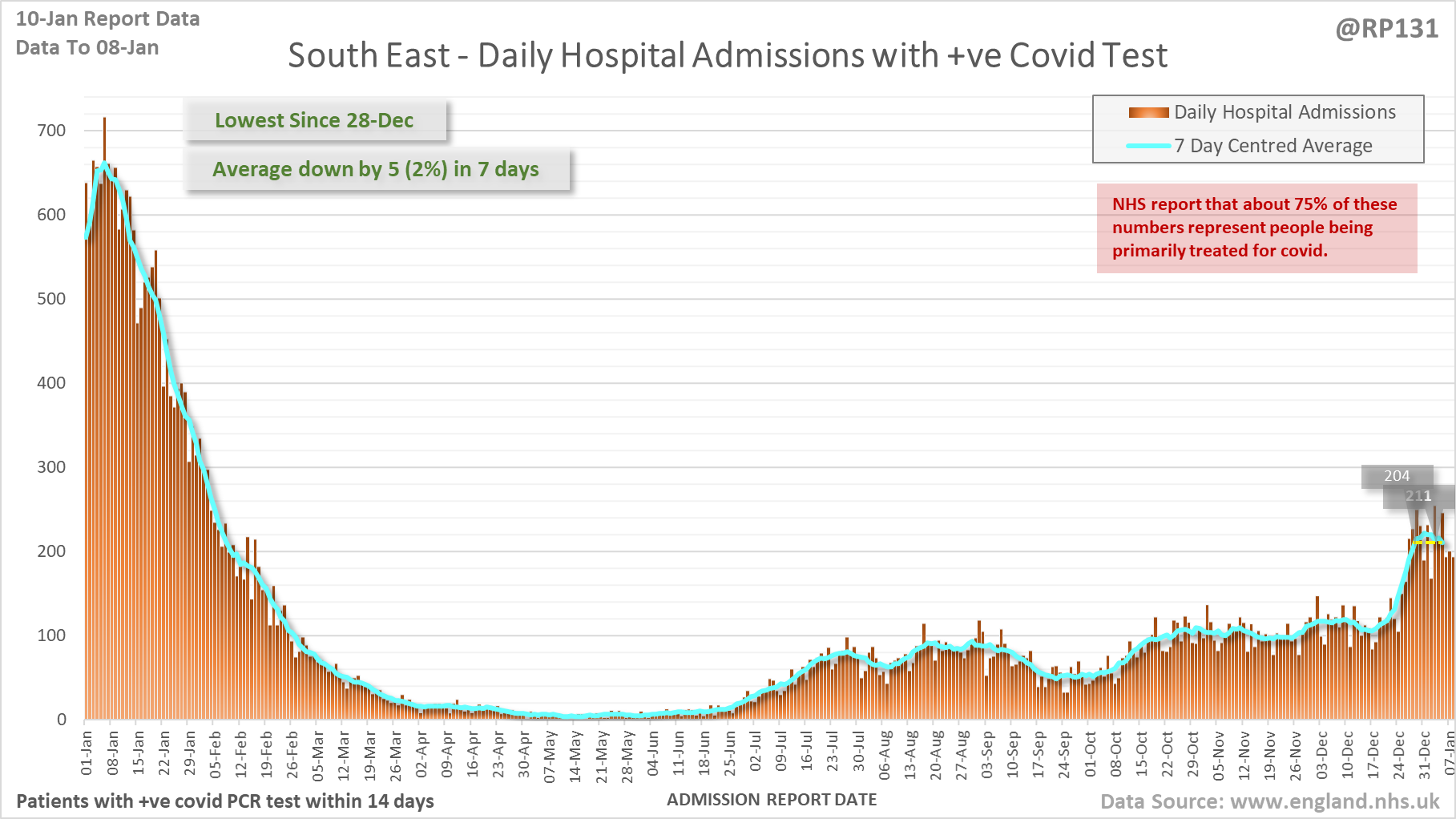 [8/28] Latest view on England covid hospital admissions (as of 10-Jan) with 1,862 reported for 08-Jan.