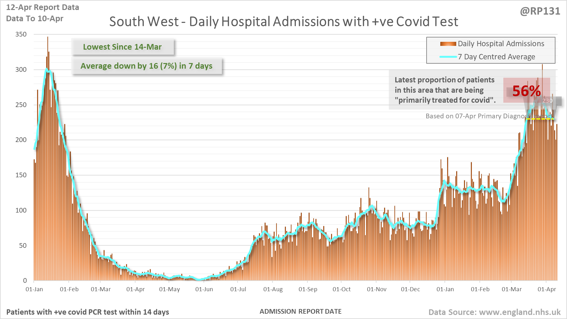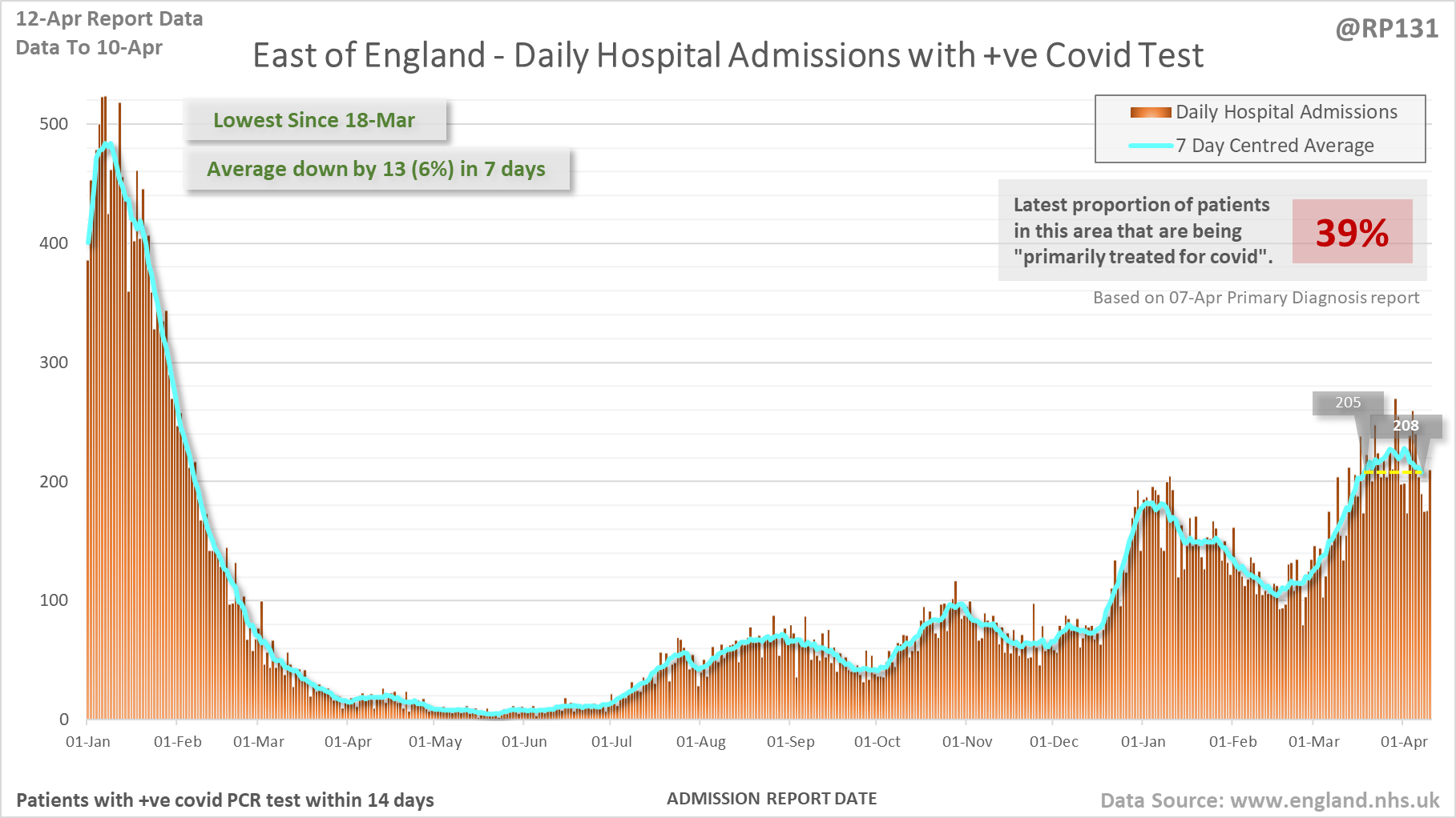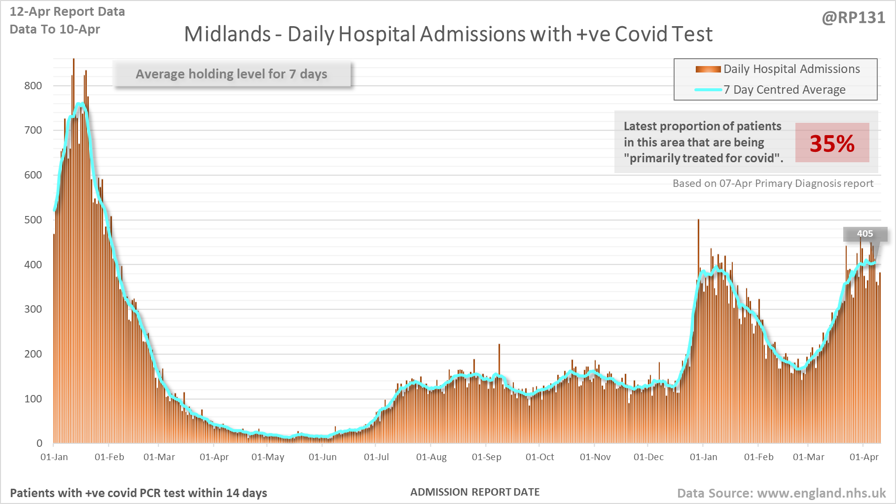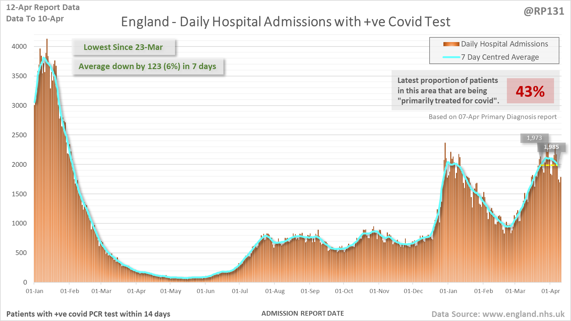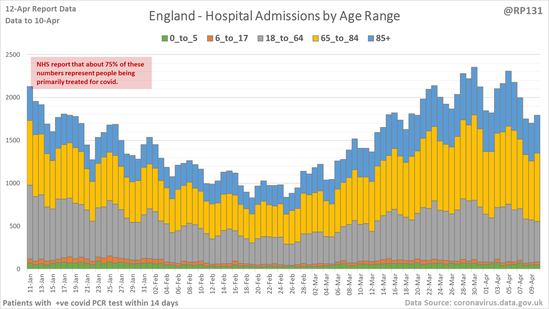 [1/27] Latest view on England covid hospital admissions (as of 12-Apr) with 1,792 reported for 10-Apr.