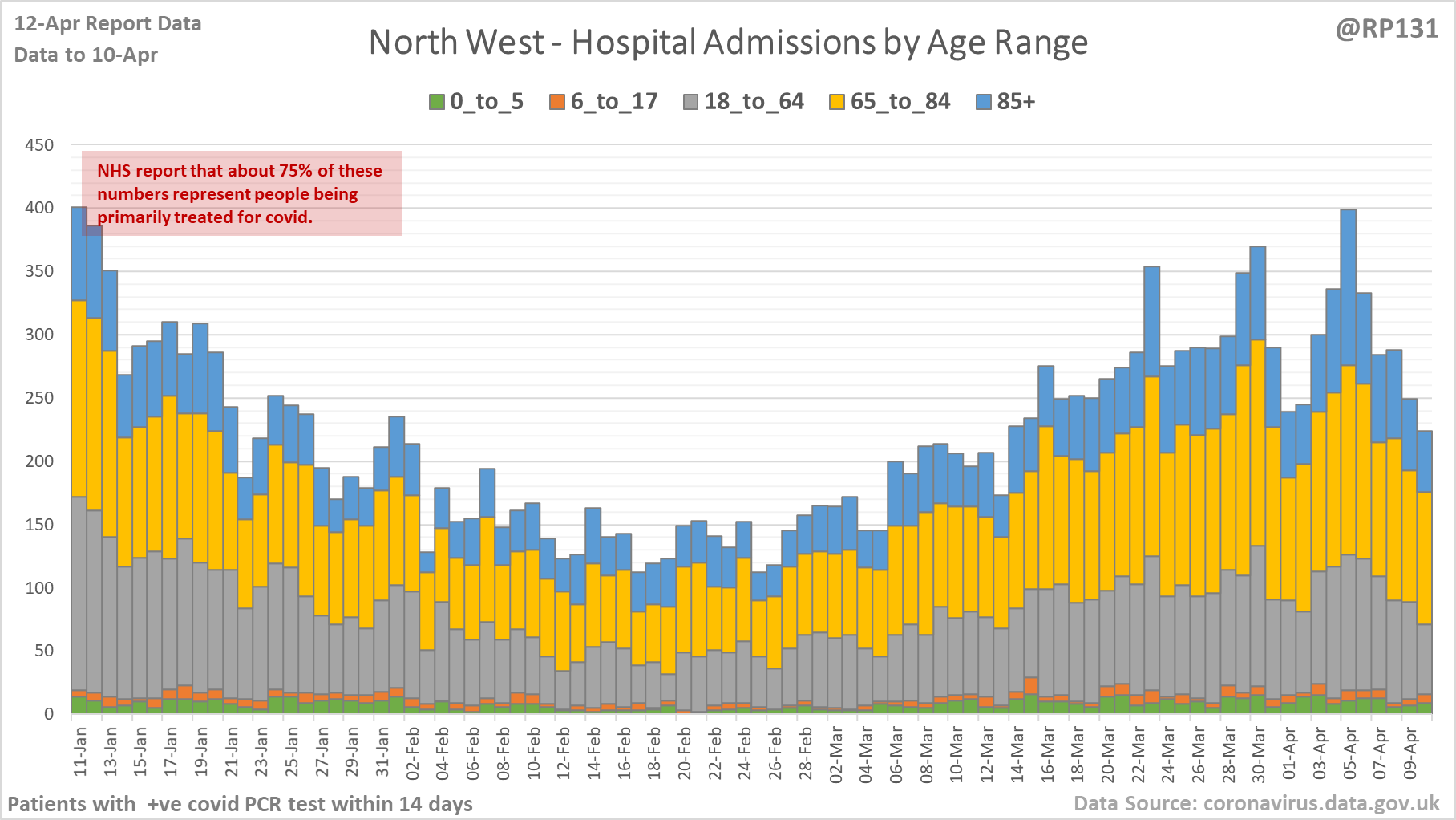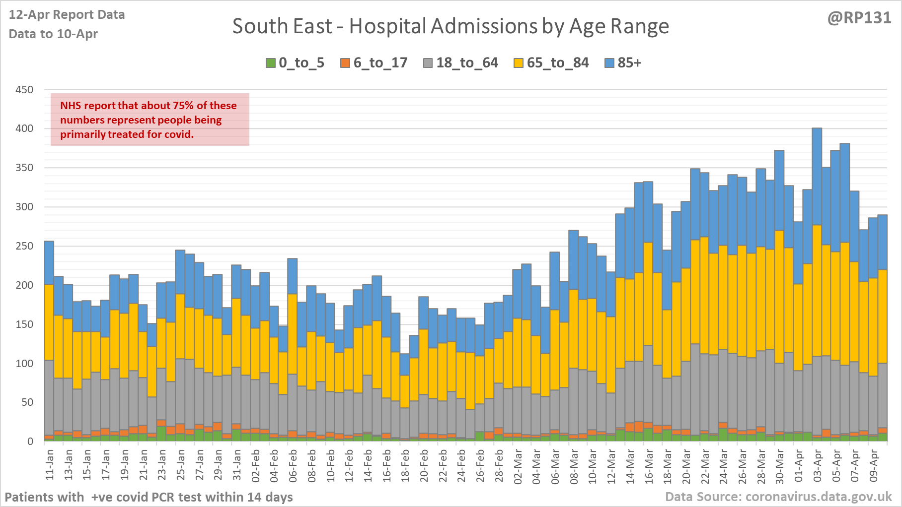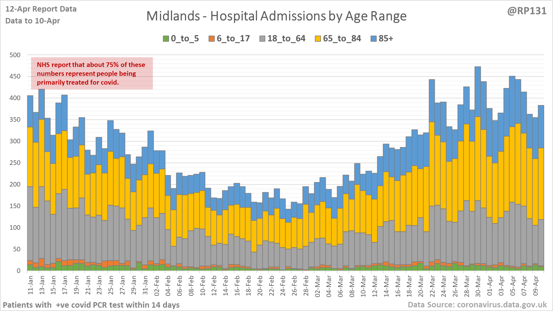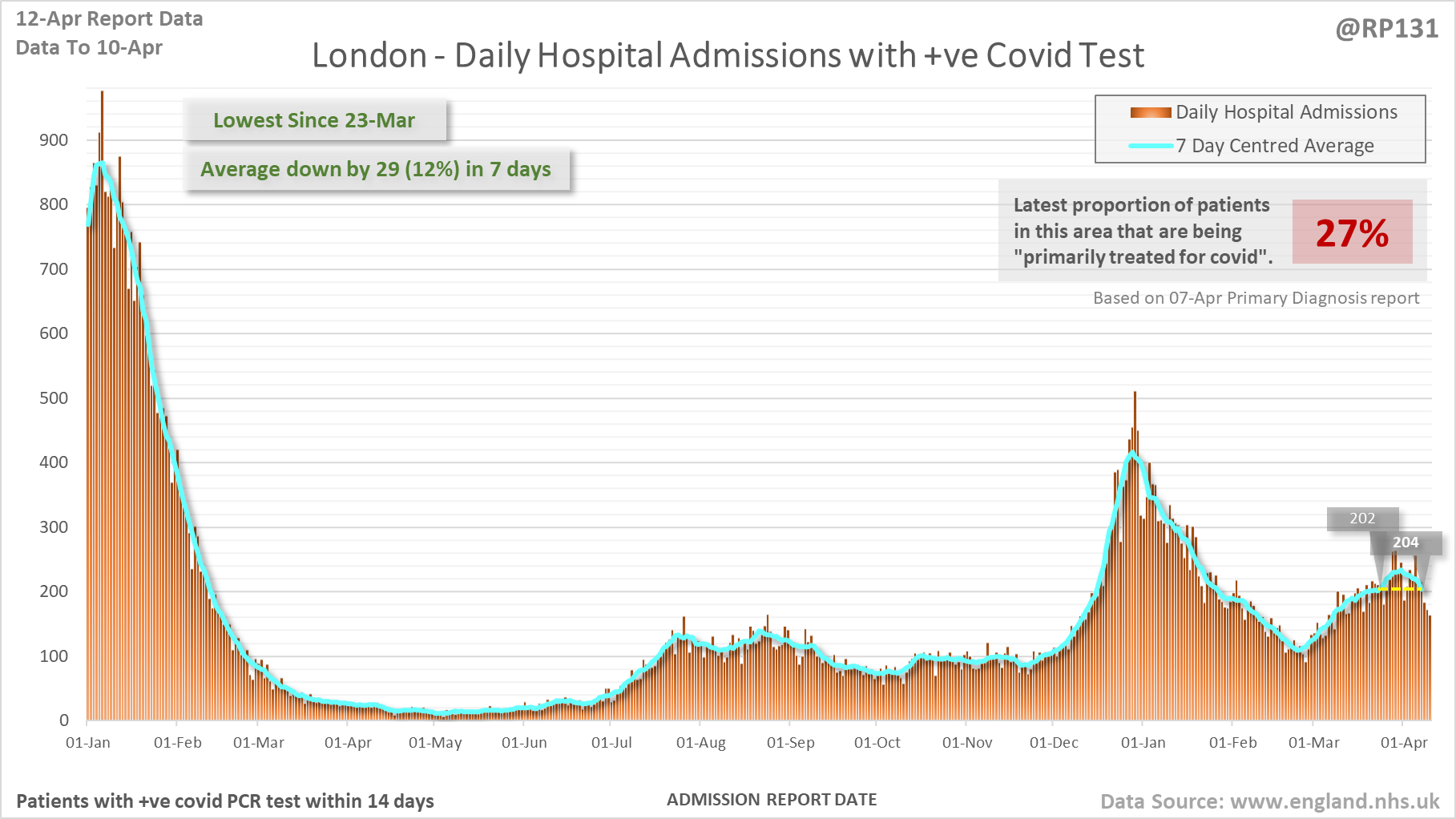 [4/27] Latest view on England patients with a positive covid test currently in hospital, as of 8am on 12-Apr.