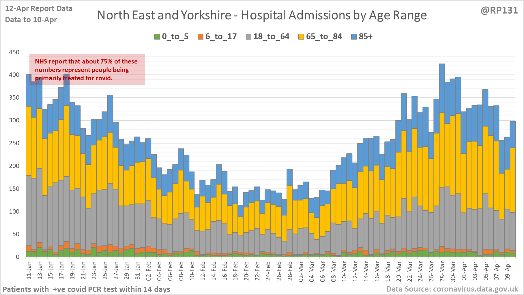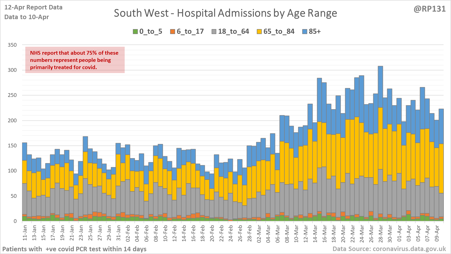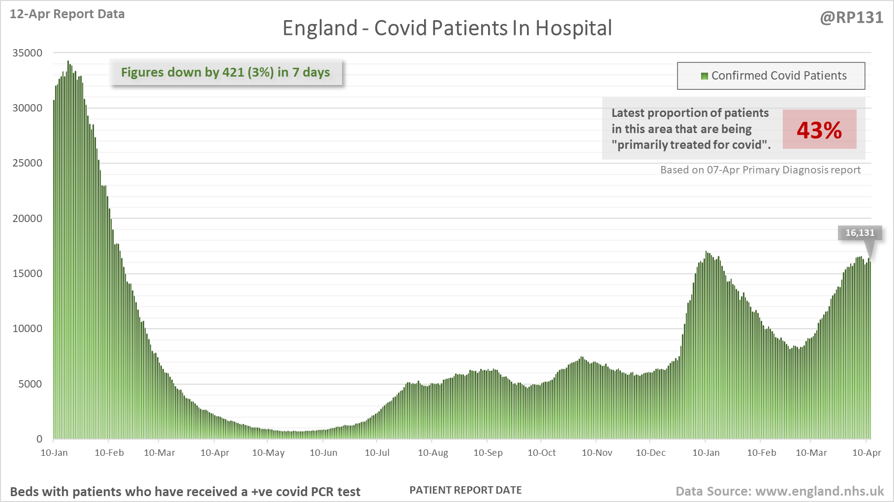 [4/27] Latest view on England patients with a positive covid test currently in hospital, as of 8am on 12-Apr.