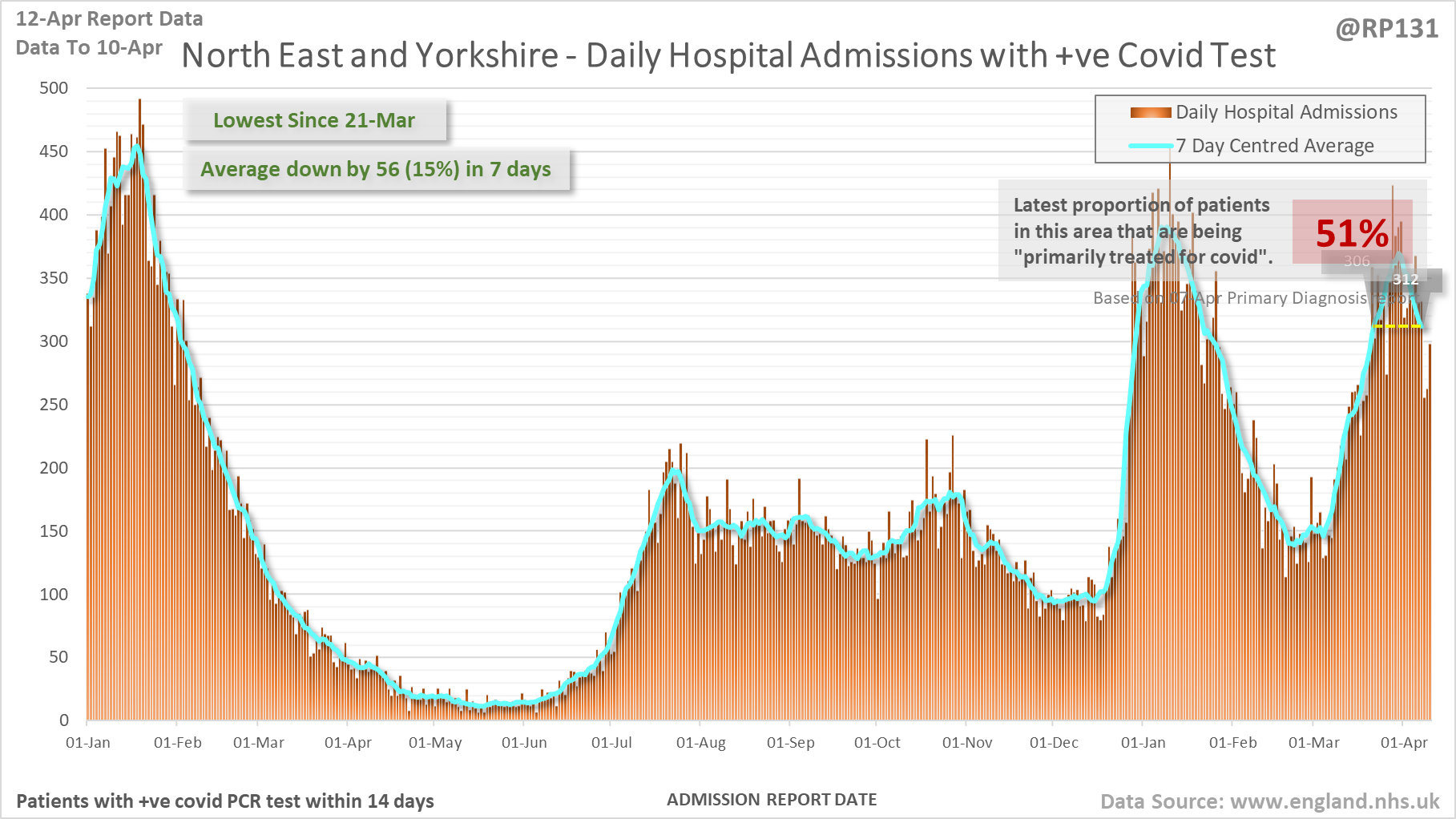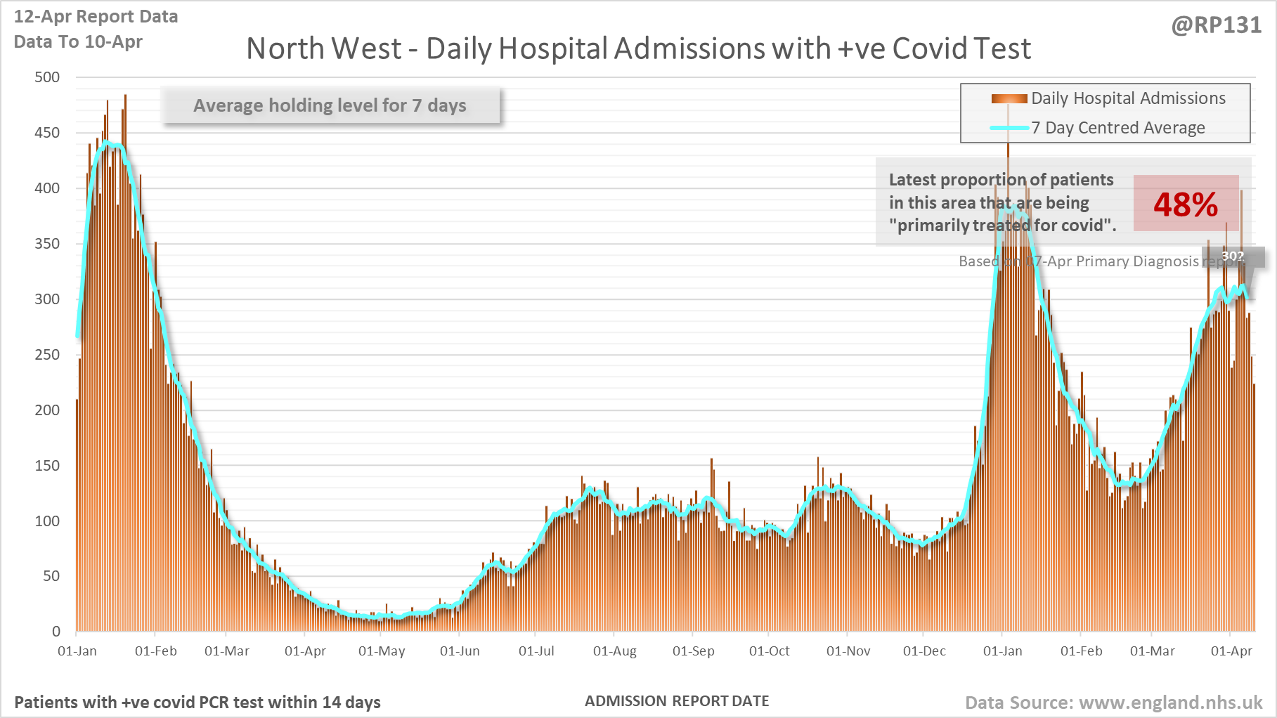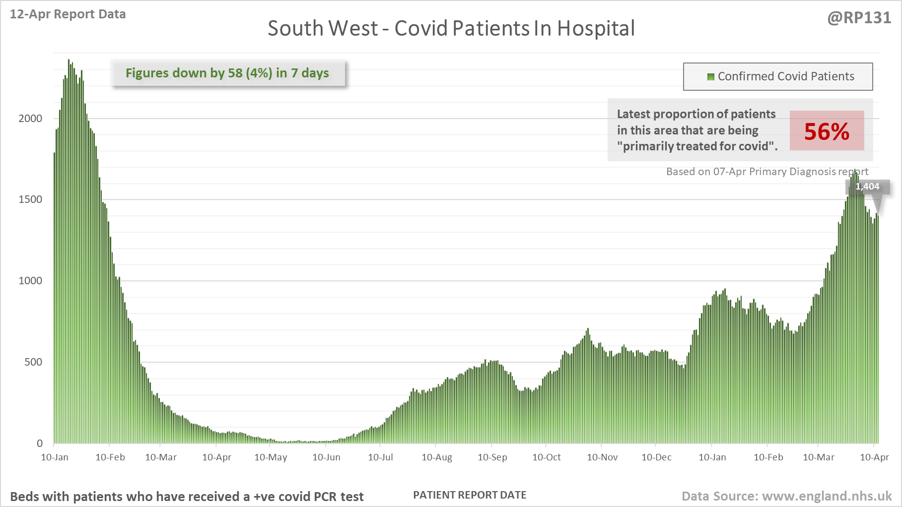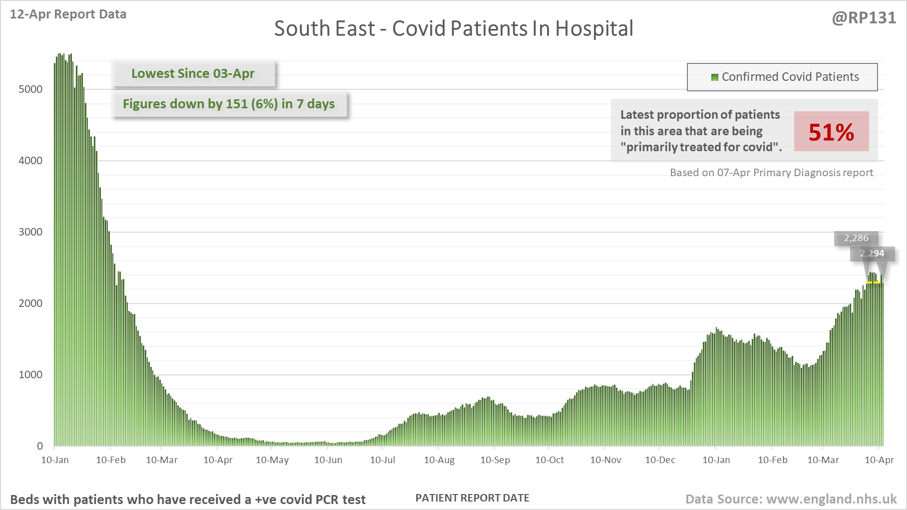 [4/27] Latest view on England patients with a positive covid test currently in hospital, as of 8am on 12-Apr.