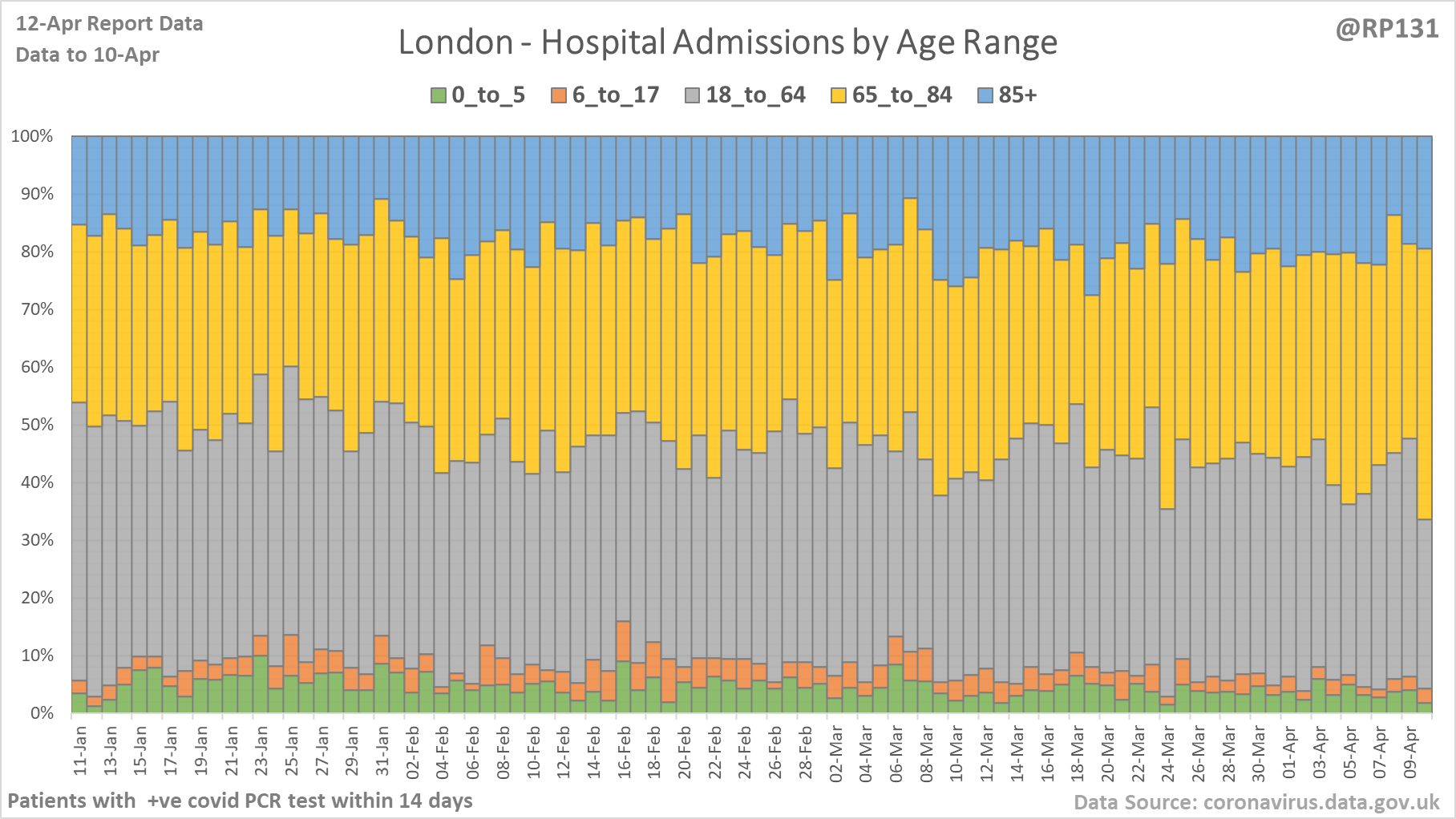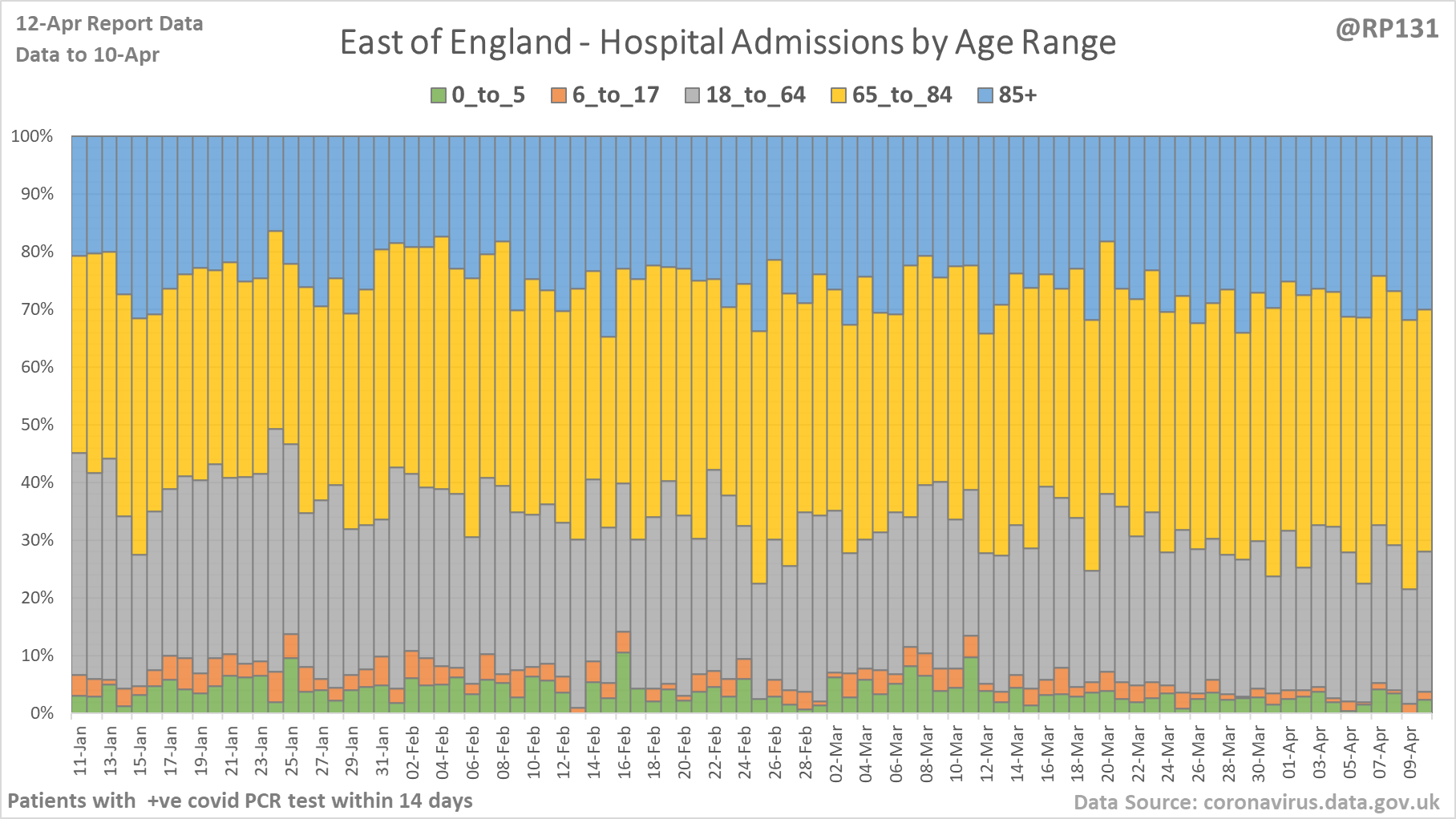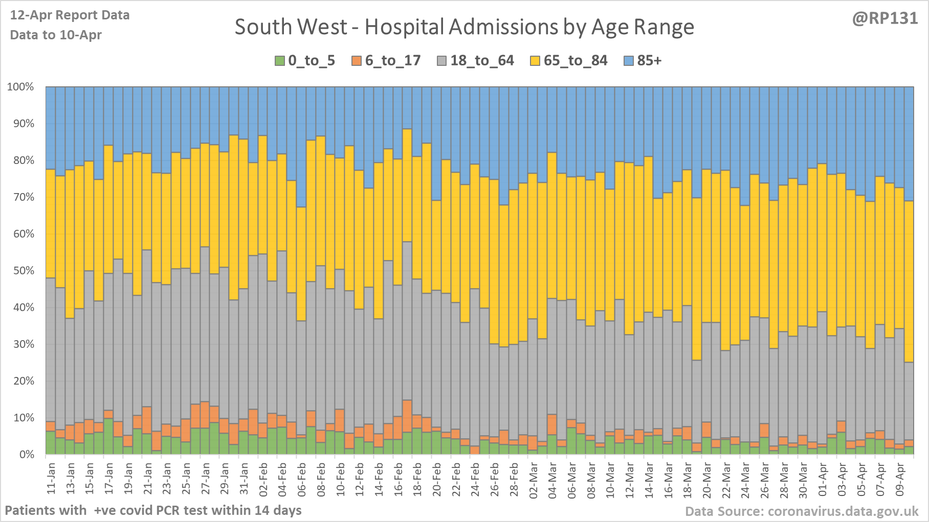 [13/27] Percentage view of age ranges of England hospital admissions.