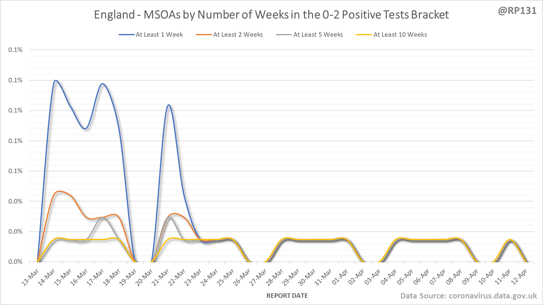 E.g. up to 07-Apr, 0% of England MSOAs have gone at least a week with fewer than 3 new positive tests per week.