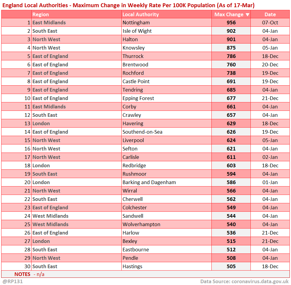 [14/15] Top 30 England/UK-wide local areas by maximum change in weekly rate per 100K population.