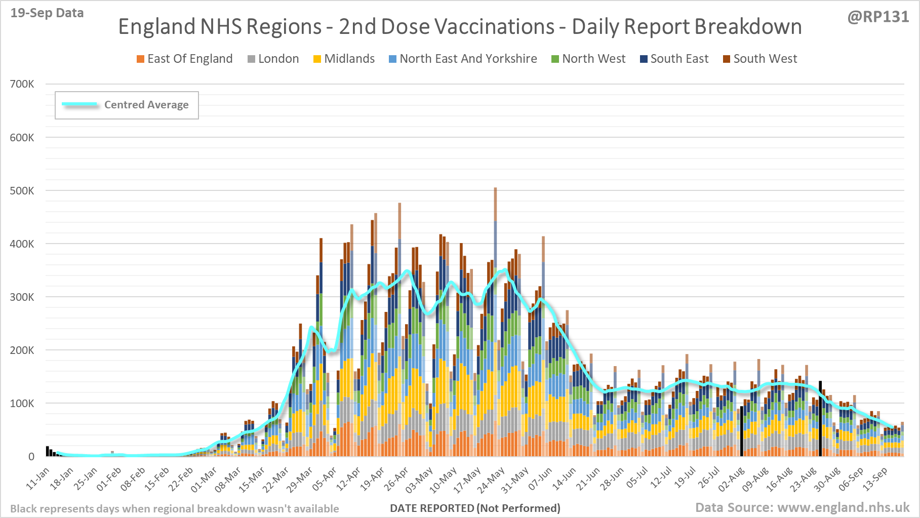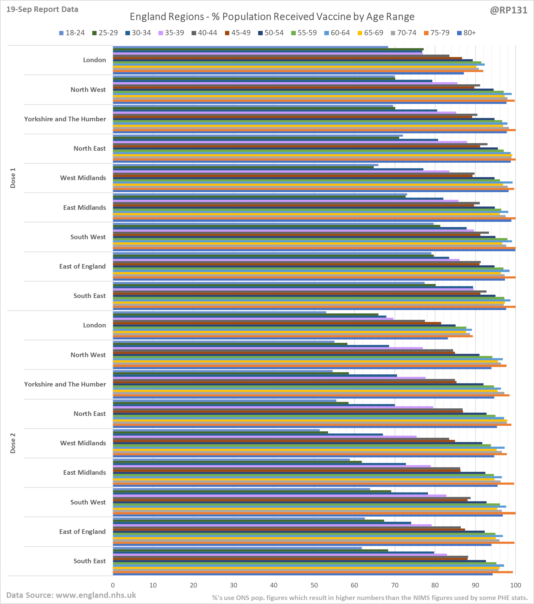 [1/6] England #NHS region vac. chart based on today's (19-Sep) report.